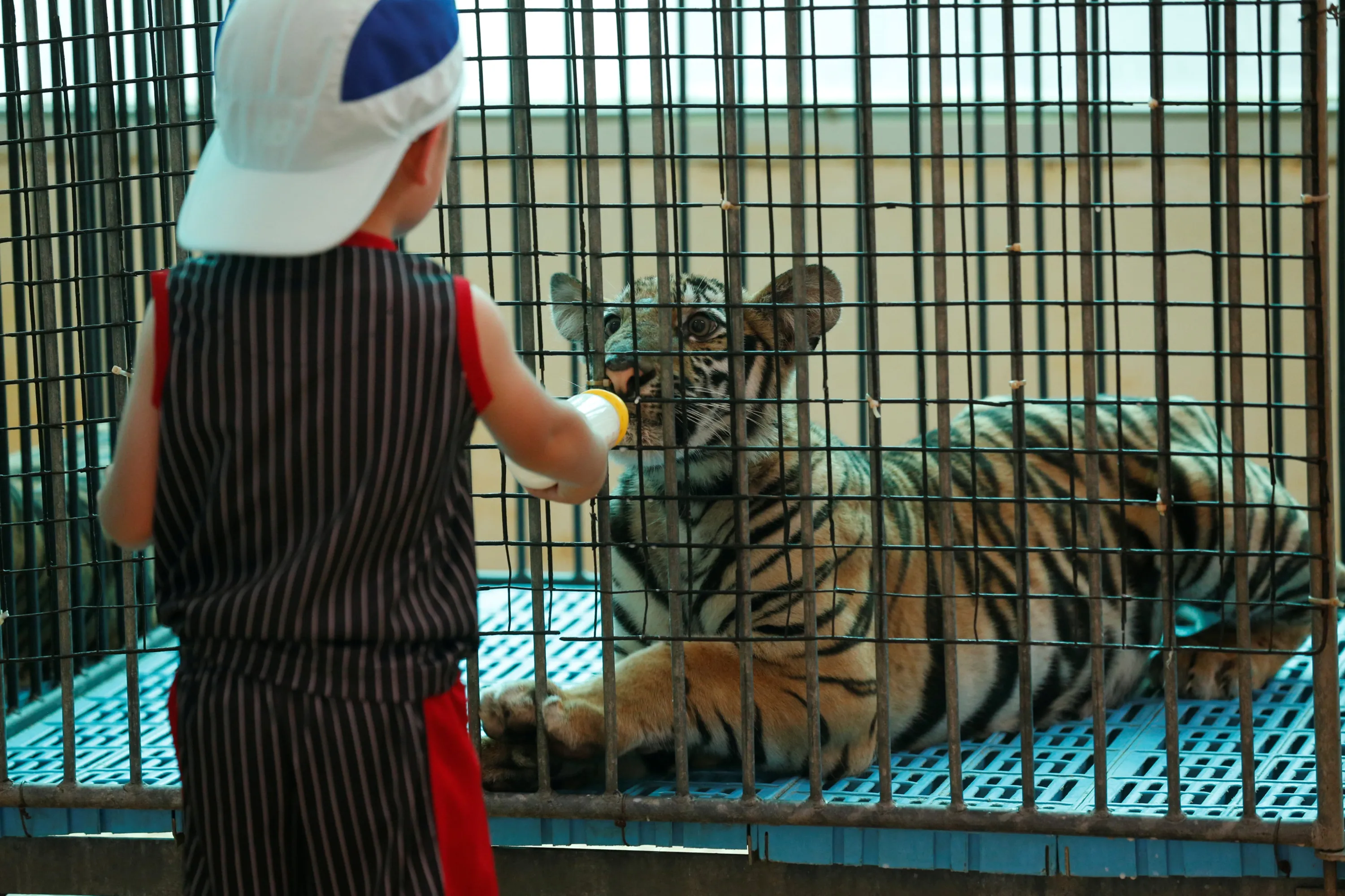 A boy feeds milk to a tiger cub at the Sriracha Tiger Zoo in the Chonburi province, Thailand June 7, 2016. (Photo by Chaiwat Subprasom/Reuters)