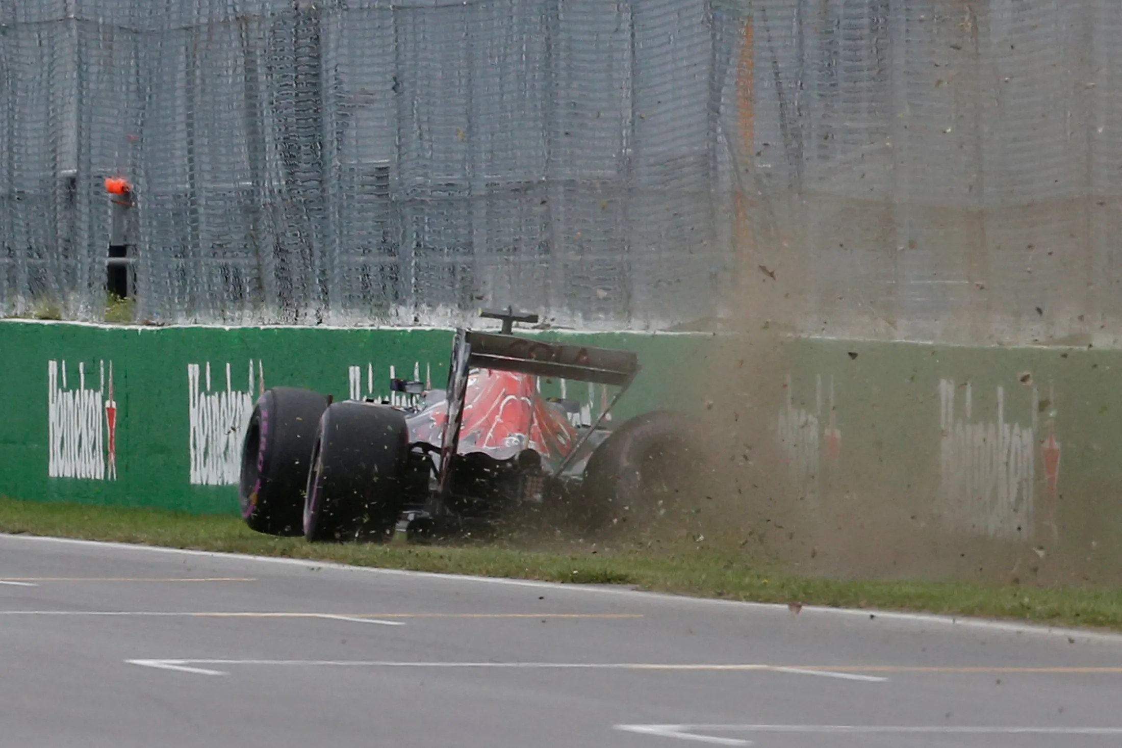 Red Bull driver Carlos Sainz of Spain crashes into the wall during qualifying at the F1 Canadian Grand Prix auto race, Saturday, June 11, 2016, in Montreal. (Photo by Chris Wattie/Reuters)