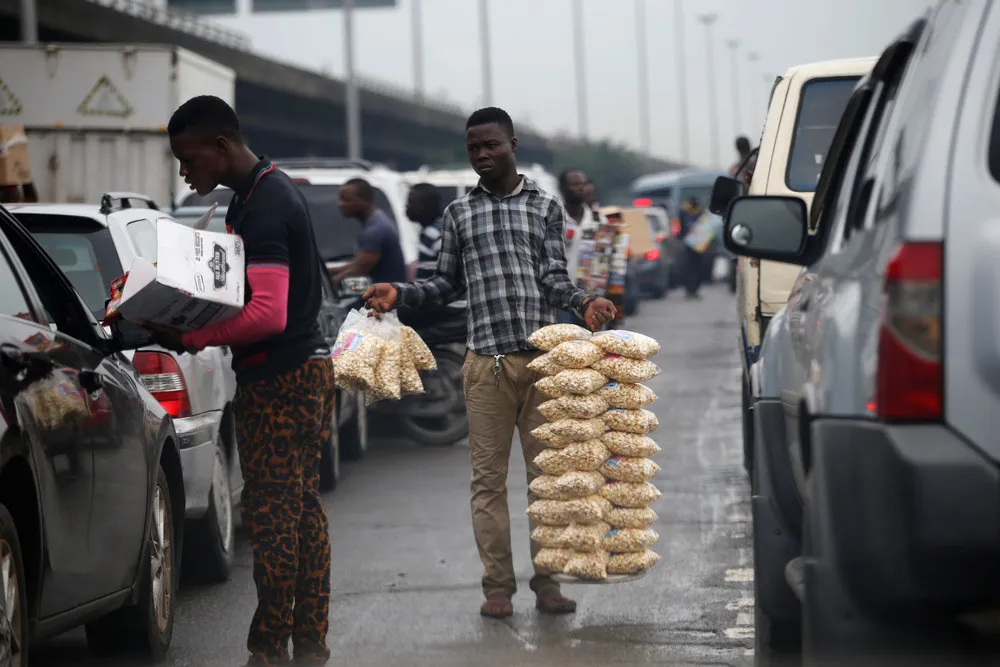 Men sell their wares in traffic in Victoria Island district in Nigeria's commercial capital Lagos June 14, 2016. (Photo by Akintunde Akinleye/Reuters)