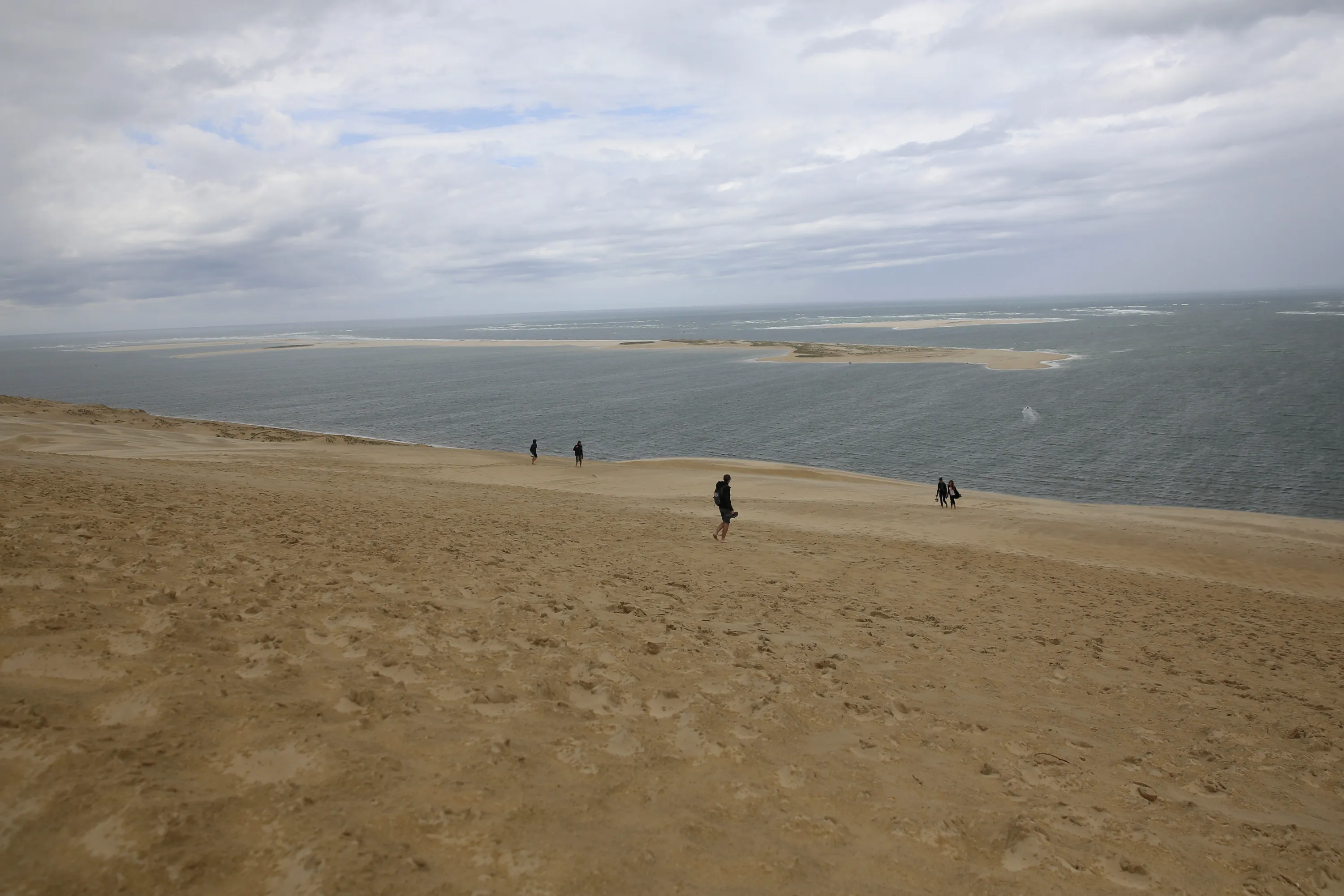 People walk along the Dune du Pilat (Dune of Pilat), the tallest sand dune in Europe, in La Teste de Buch, near Bordeaux, France, June 15, 2016. (Photo by Sergio Perez/Reuters)