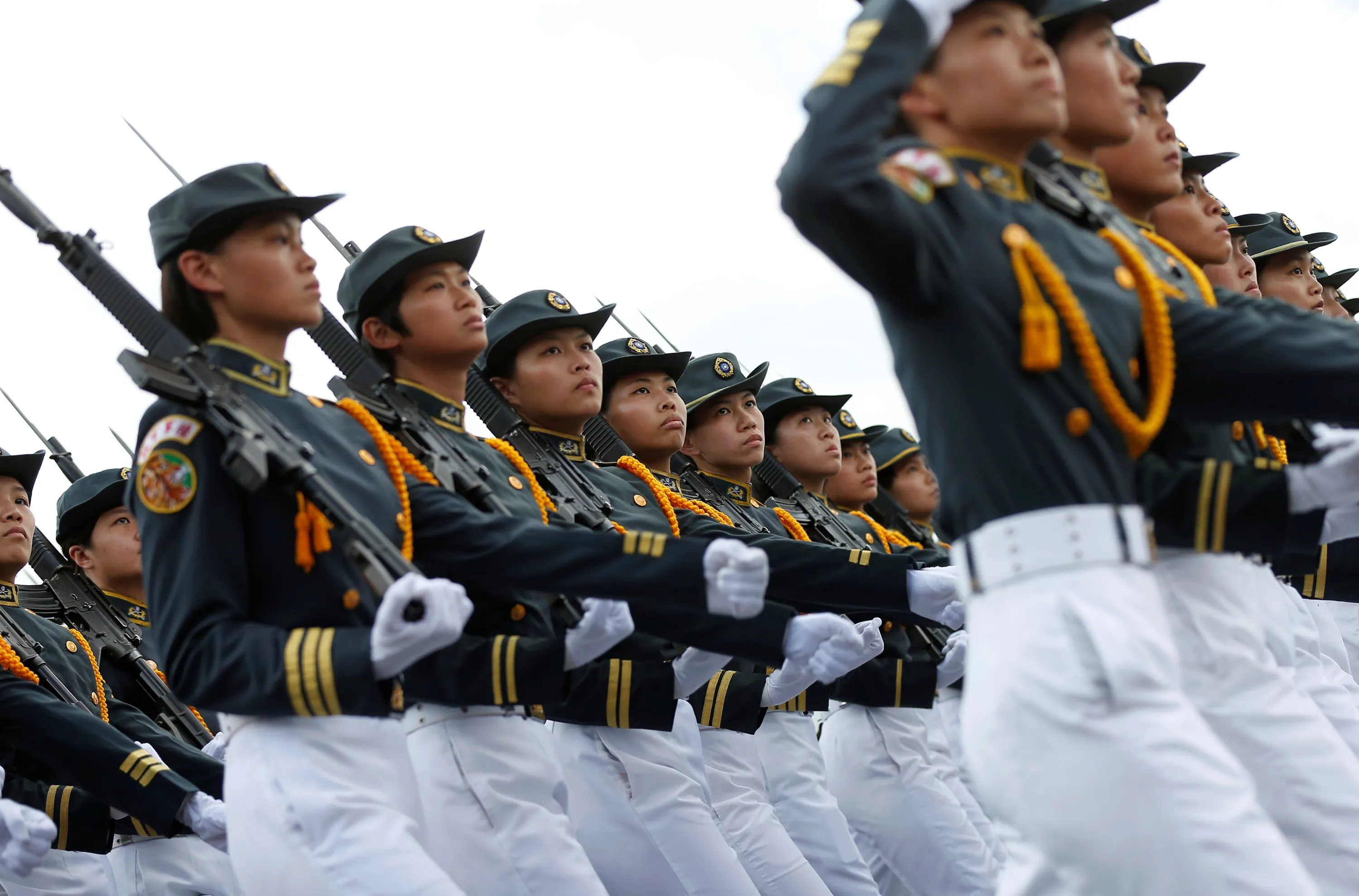 Taiwanese female cadets march during a ceremony to mark the 92nd anniversary of the Whampoa Military Academy, in Kaohsiung, southern Taiwan June 16, 2016. (Photo by Tyrone Siu/Reuters)