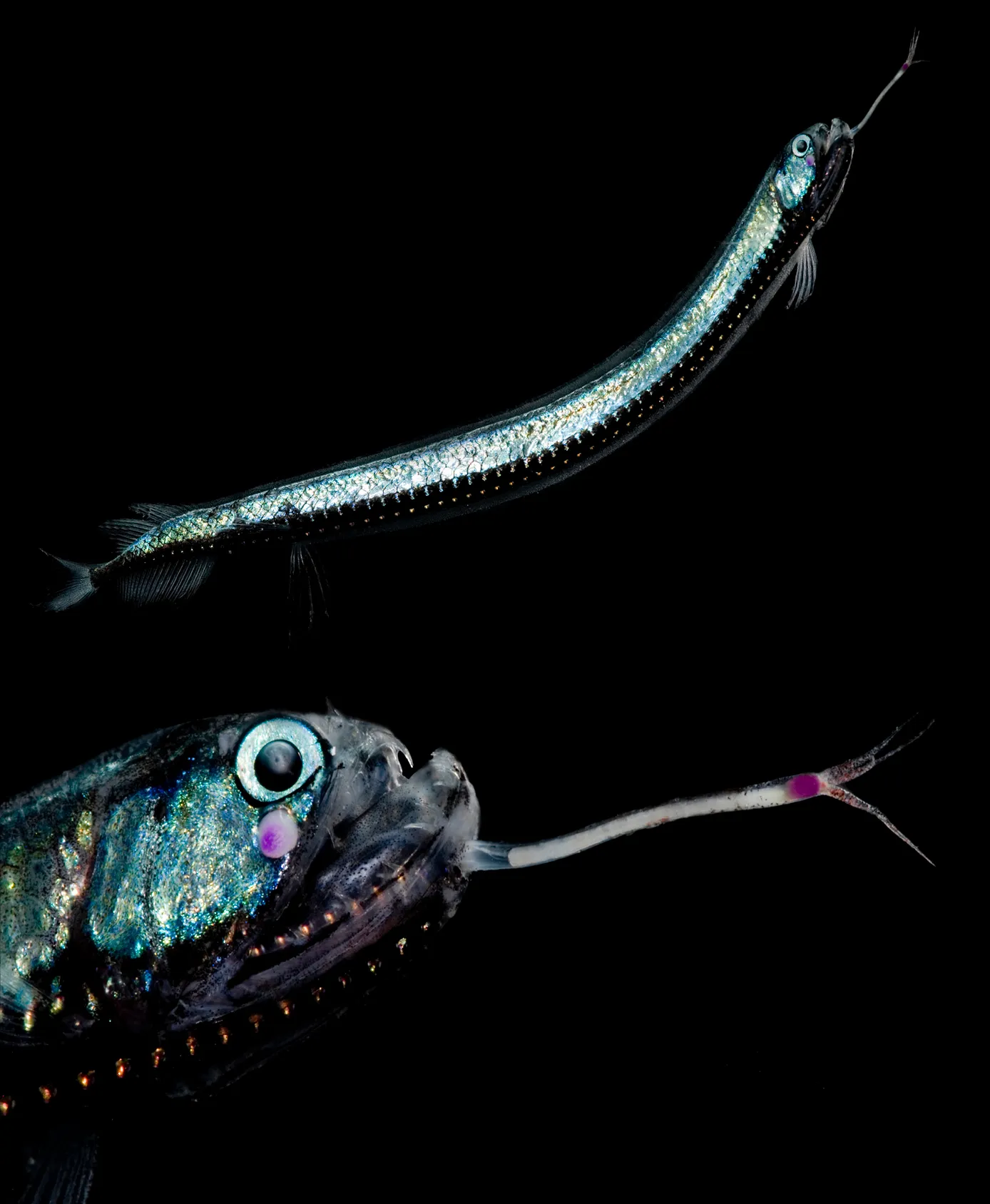 Günther’s boafish, a kind of dragonfish with a network of photophores along the length of its body, caught in the Gulf of Mexico. (Photo by Danté Fenolio/The Guardian/Johns Hopkins University Press)