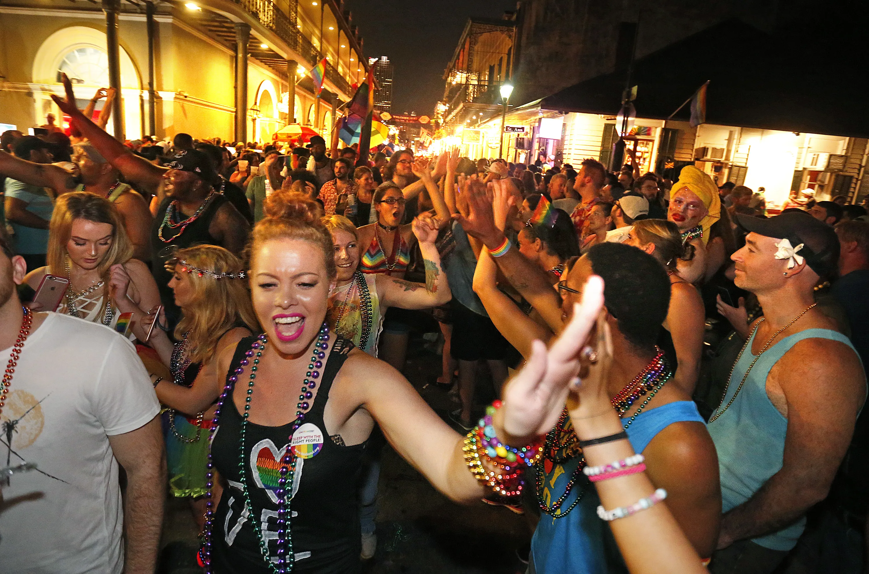 Participants march in the “New Orleans Pride” parade, a gay pride parade, through Bourbon Street in New Orleans, Saturday, June 18, 2016. (Photo by Gerald Herbert/AP Photo)
