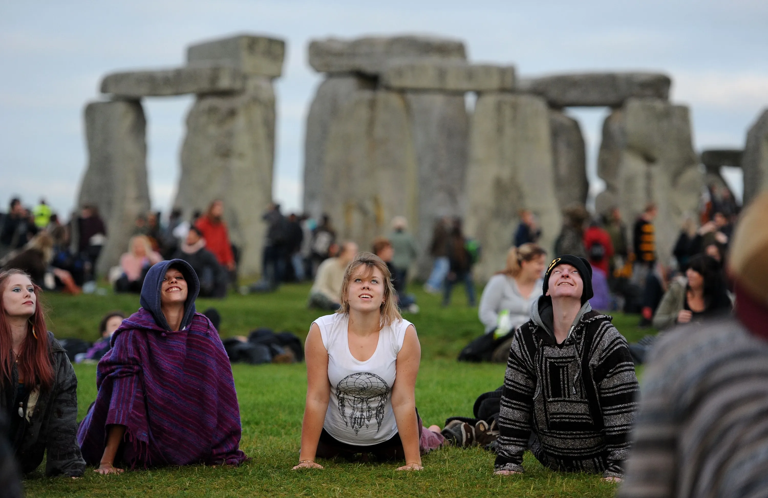 Today is also international yoga day – there are plenty of enthusiasts at Stonehenge. (Photo by Andrew Matthews/PA Wire)