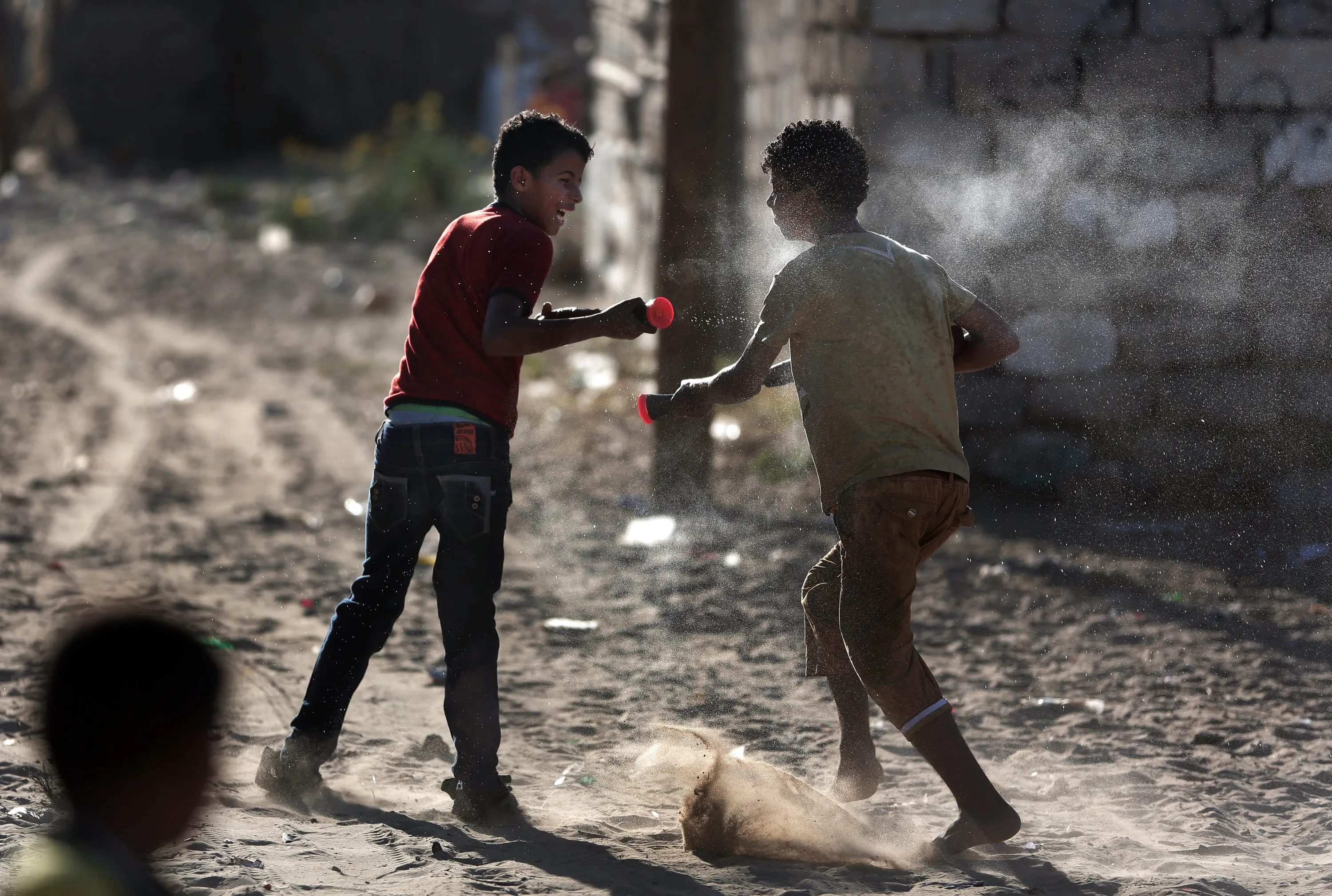 In this Monday, June 20, 2016 photo, Palestinian boys play with water toys in el-Zohor slum on the outskirts of Khan Younis refugee camp, southern Gaza Strip. (Photo by Khalil Hamra/AP Photo)