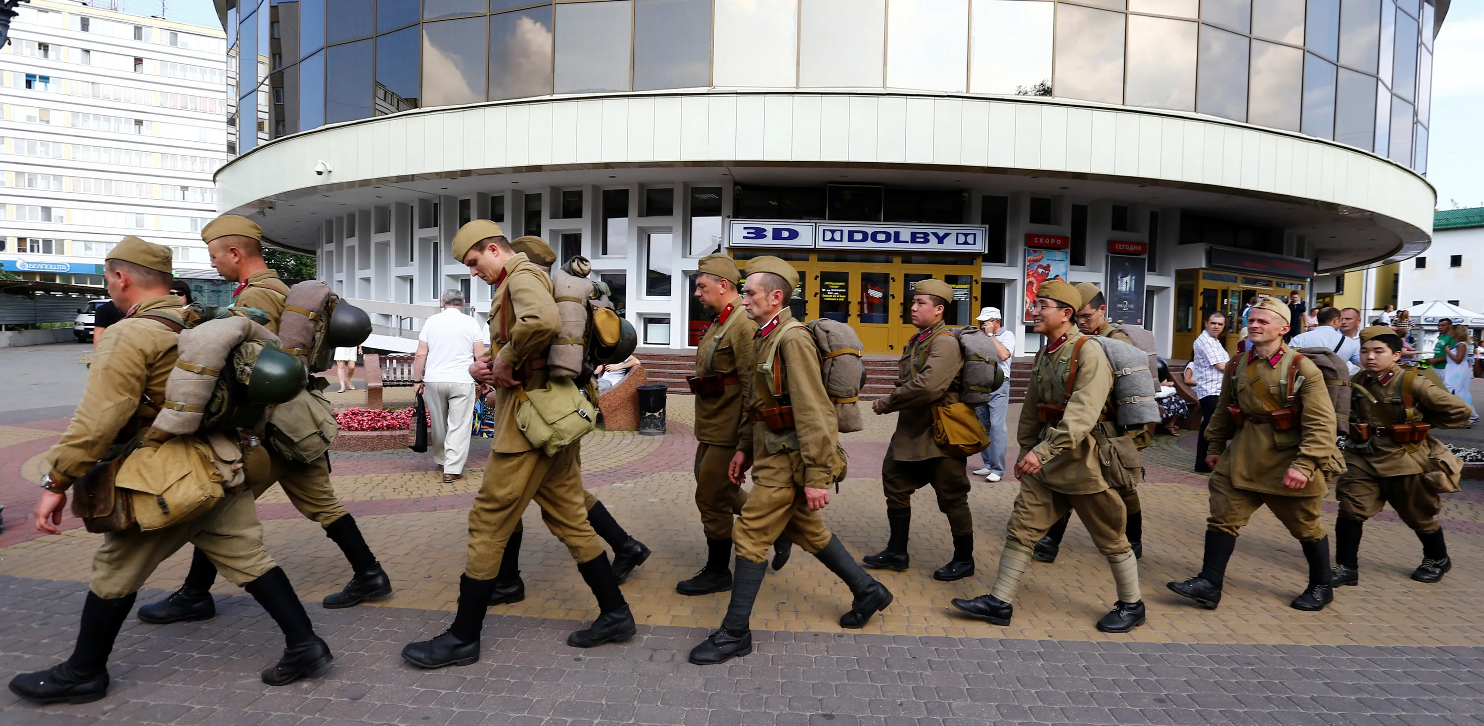 Military enthusiasts dressed as World War Two Red Army soldiers march as they mark the 75th anniversary of the Nazi Germany invasion, in Brest, Belarus June 21, 2016. (Photo by Vasily Fedosenko/Reuters)
