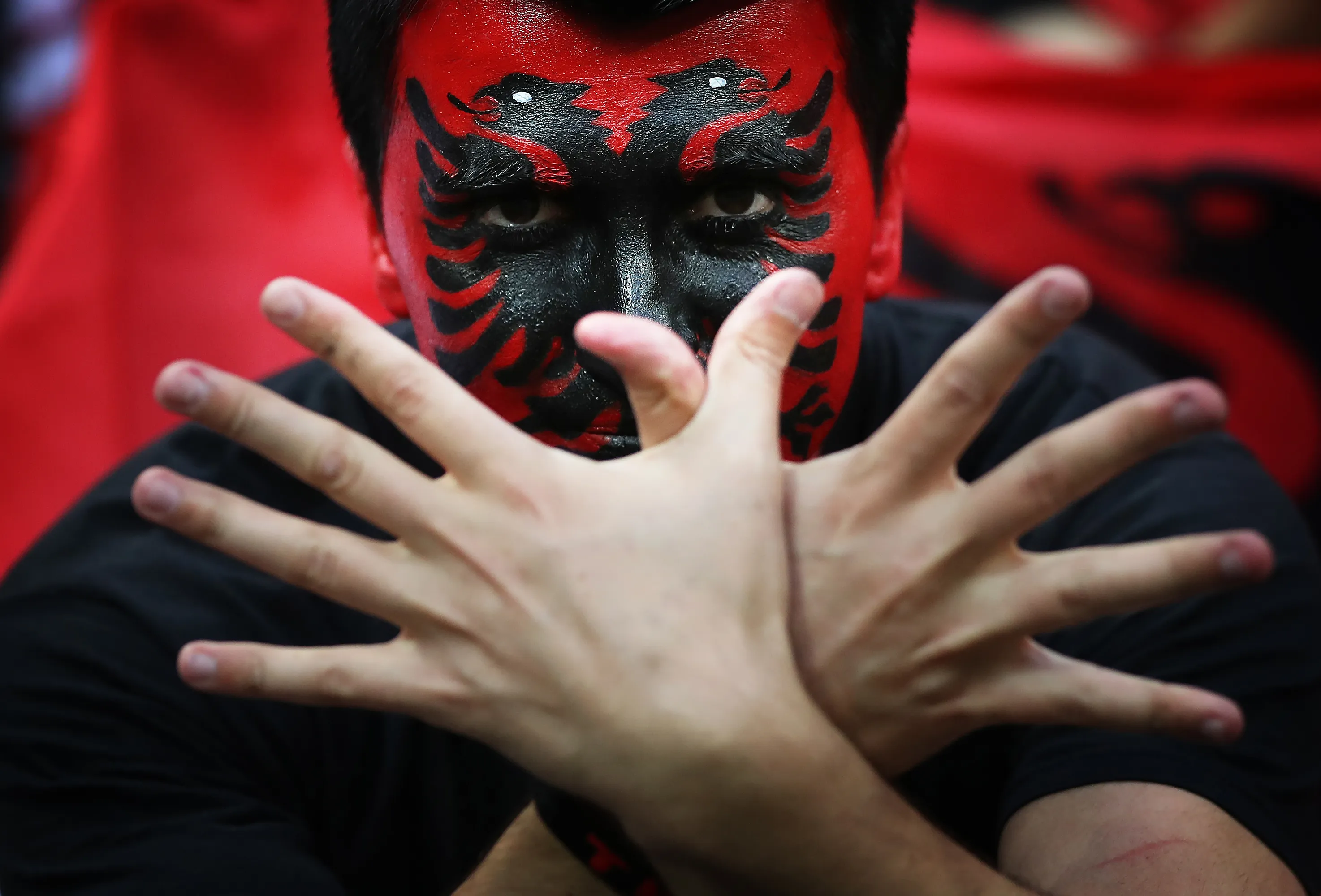 Albanian fans enjoy the atmosphere during the UEFA EURO 2016 Group A match between Romania and Albania at Stade des Lumieres on June 19, 2016 in Lyon, France. (Photo by Ian MacNicol/Getty Images)
