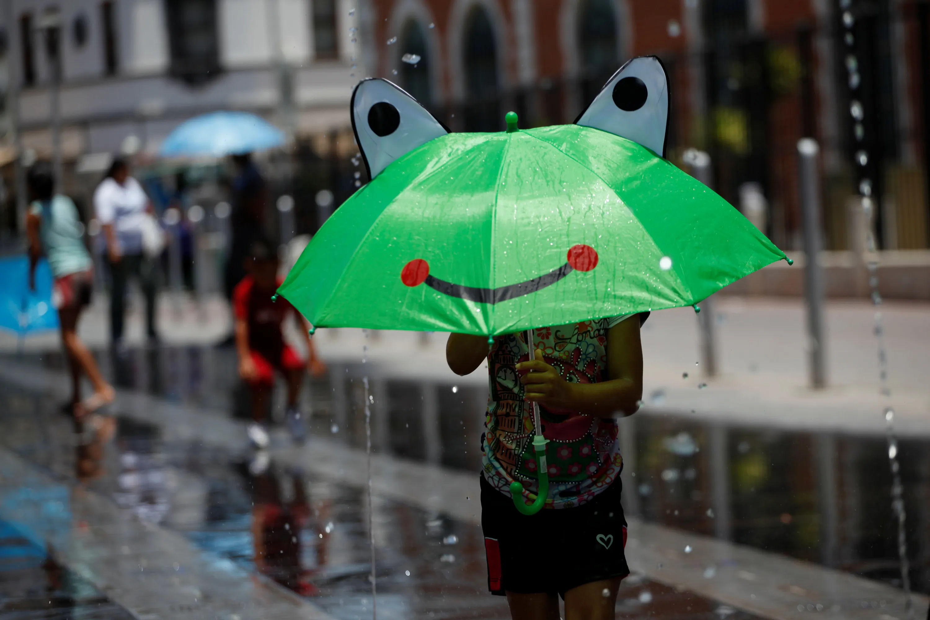 A child cools off in a fountain on a hot summer day in downtown Ciudad Juarez, Mexico, June 23, 2016. (Photo by Jose Luis Gonzalez/Reuters)