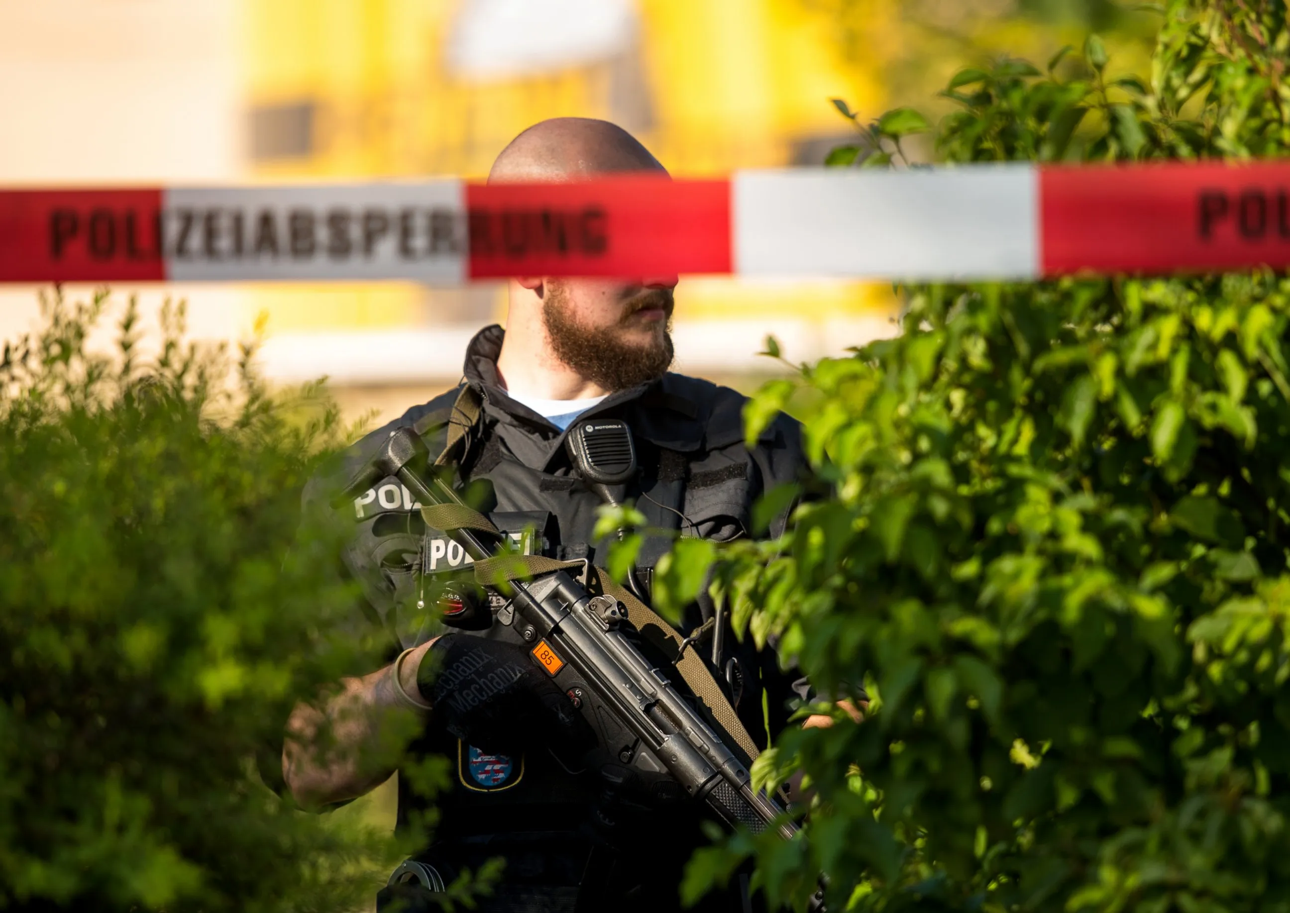 A police officer carrying a machine pistol stands guard outside the Kinopolis cinema in Viernheim, Germany, June 23, 2016. Police shot dead a man who is reported to have fired a weapon. (Photo by Andreas Arnold/DPA/Newscom)