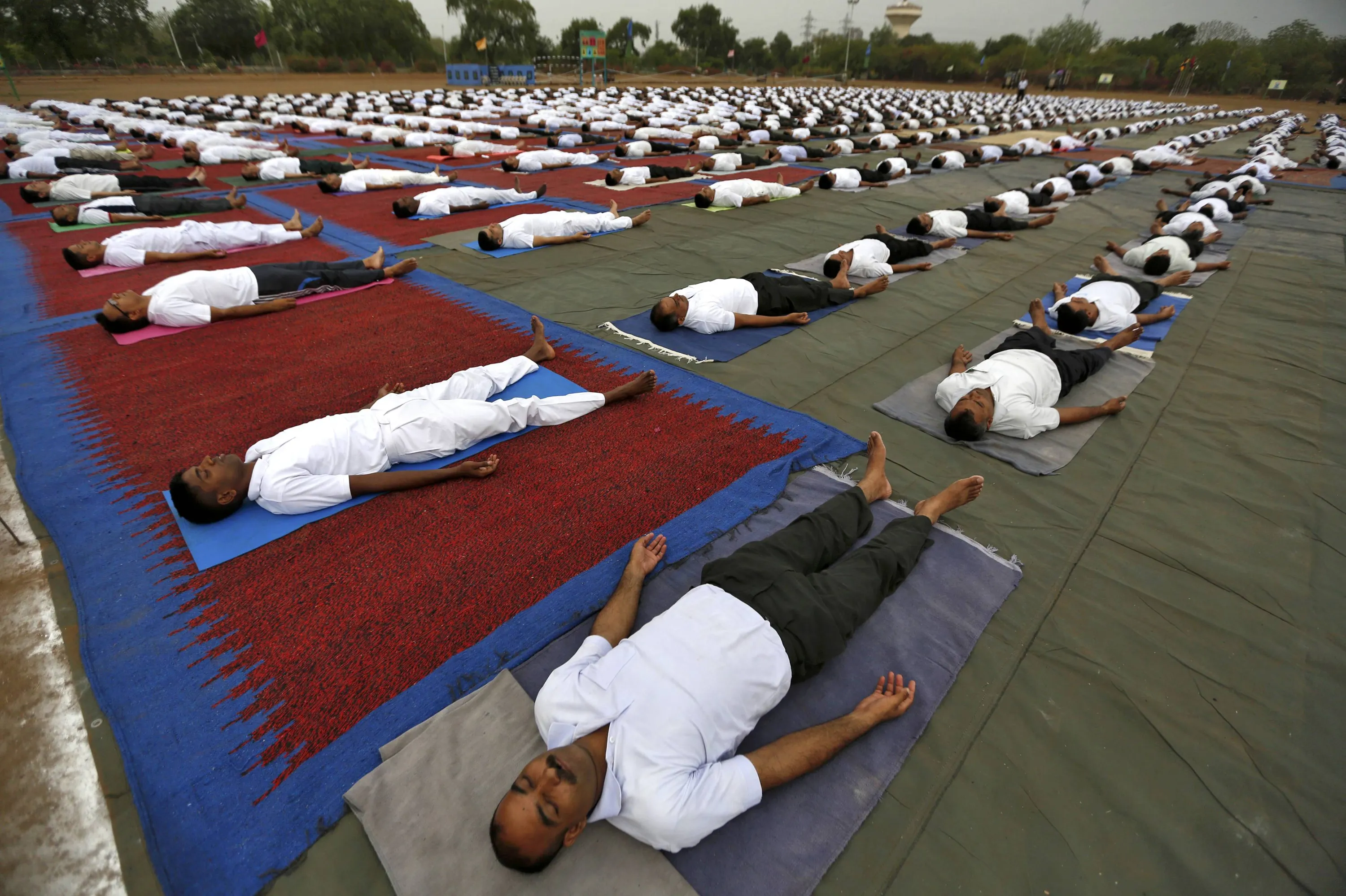Soldiers practice yoga during a rehearsal on the eve of World Yoga Day in Ahmedabad, India, June 20, 2016. (Photo by Amit Dave/Reuters)