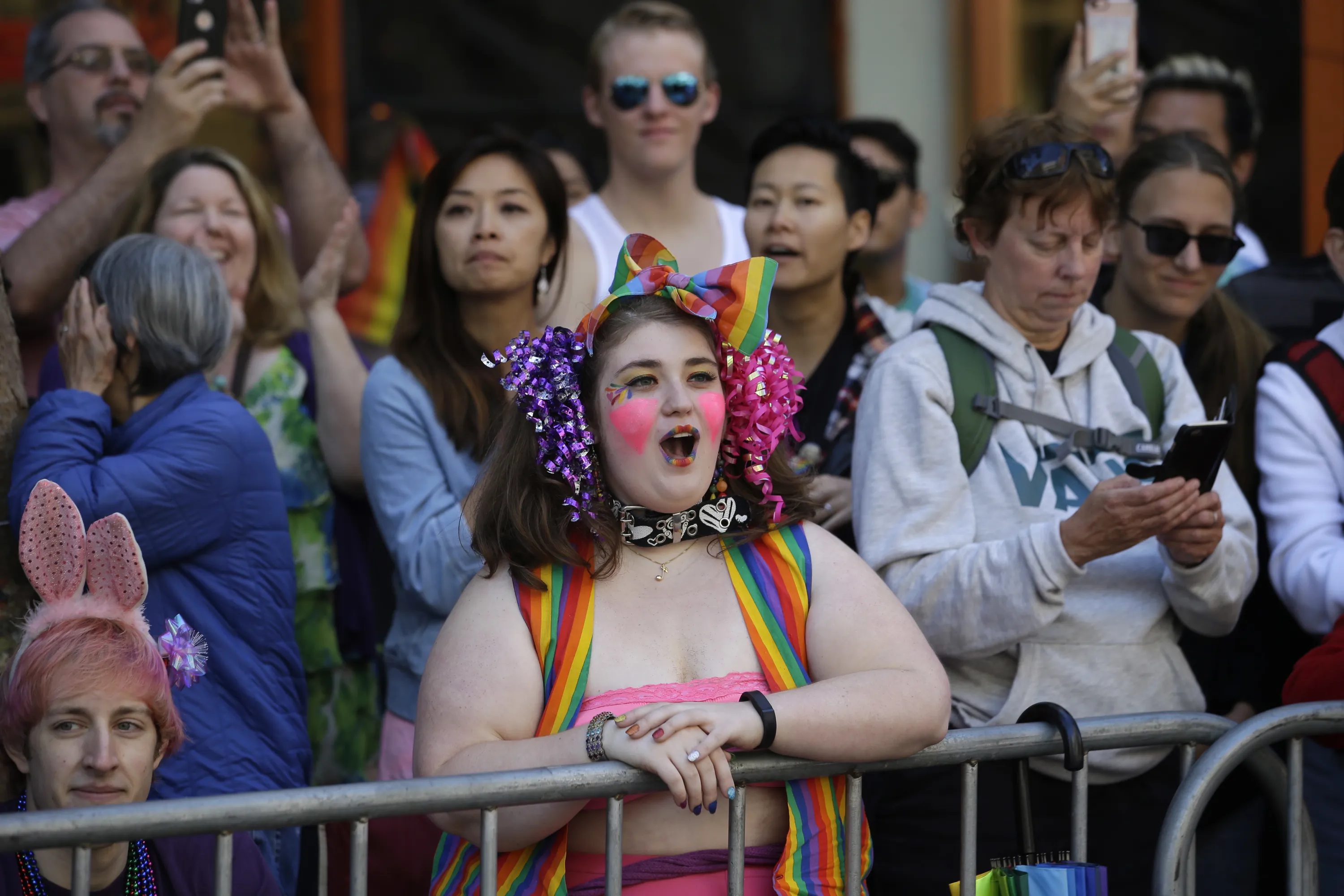 Haley Slamon cheers as she watches during the San Francisco Gay Pride parade Sunday, June 26, 2016, in San Francisco. Parades in San Francisco and other major cities Sunday featured increased security, anti-violence messages and tributes to those killed in this month's massacre at a gay nightclub in Florida. (Photo by Marcio Jose Sanchez/AP Photo)
