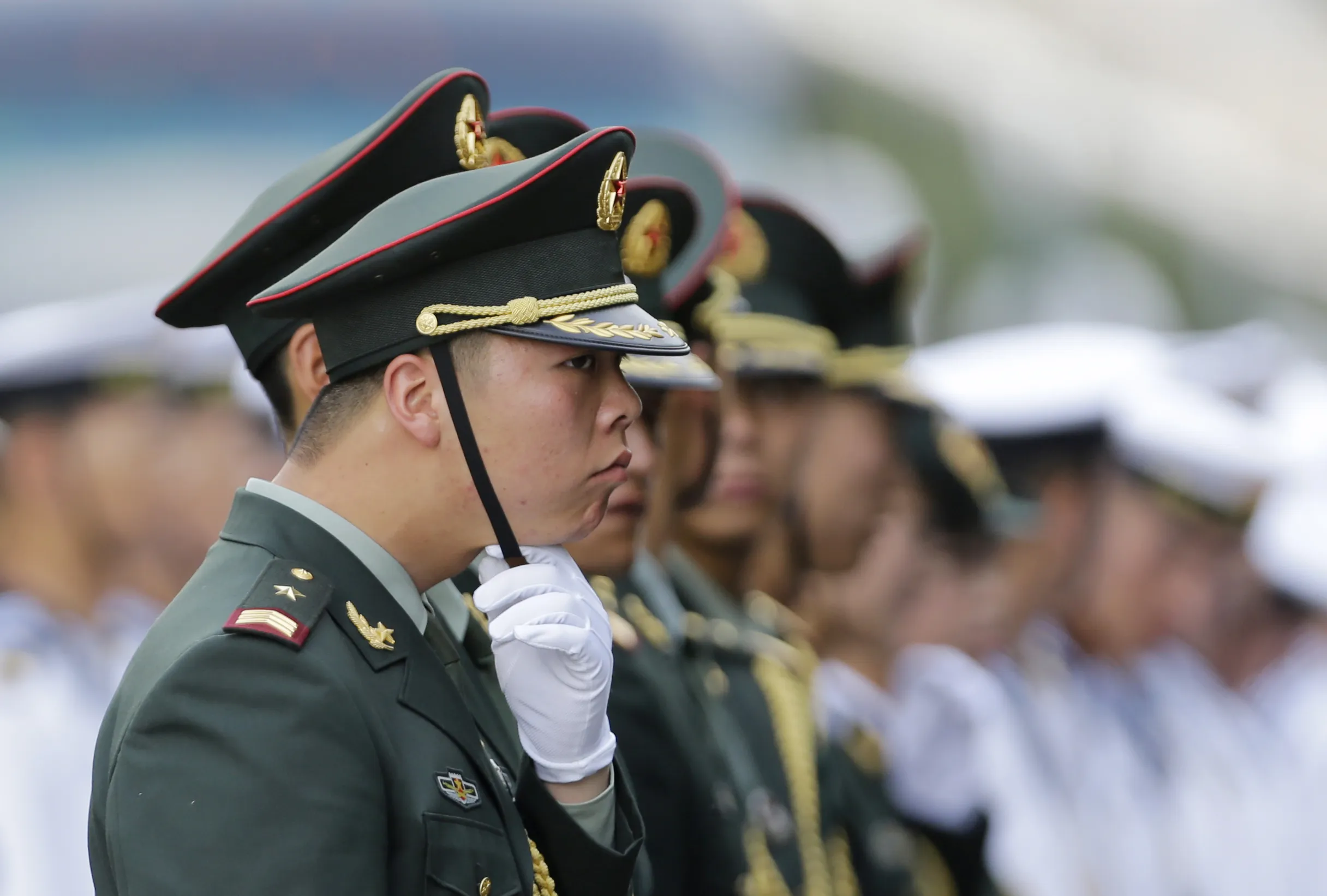 A member of honor guard adjusts his cap as he prepares for a welcoming ceremony outside the Great Hall of the People on a hot day in Beijing. (Photo by Jason Lee/Reuters)