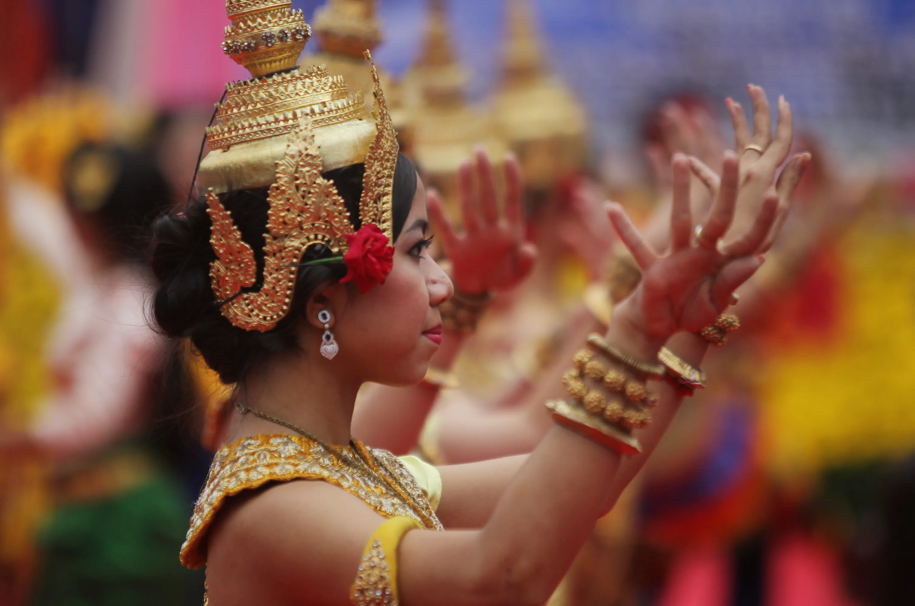 Dancers perform during a ceremony at the Cambodian People's Party (CPP) headquarters to mark the 65th anniversary of the establishment of the party in Phnom Penh June 28, 2016. (Photo by Samrang Pring/Reuters)