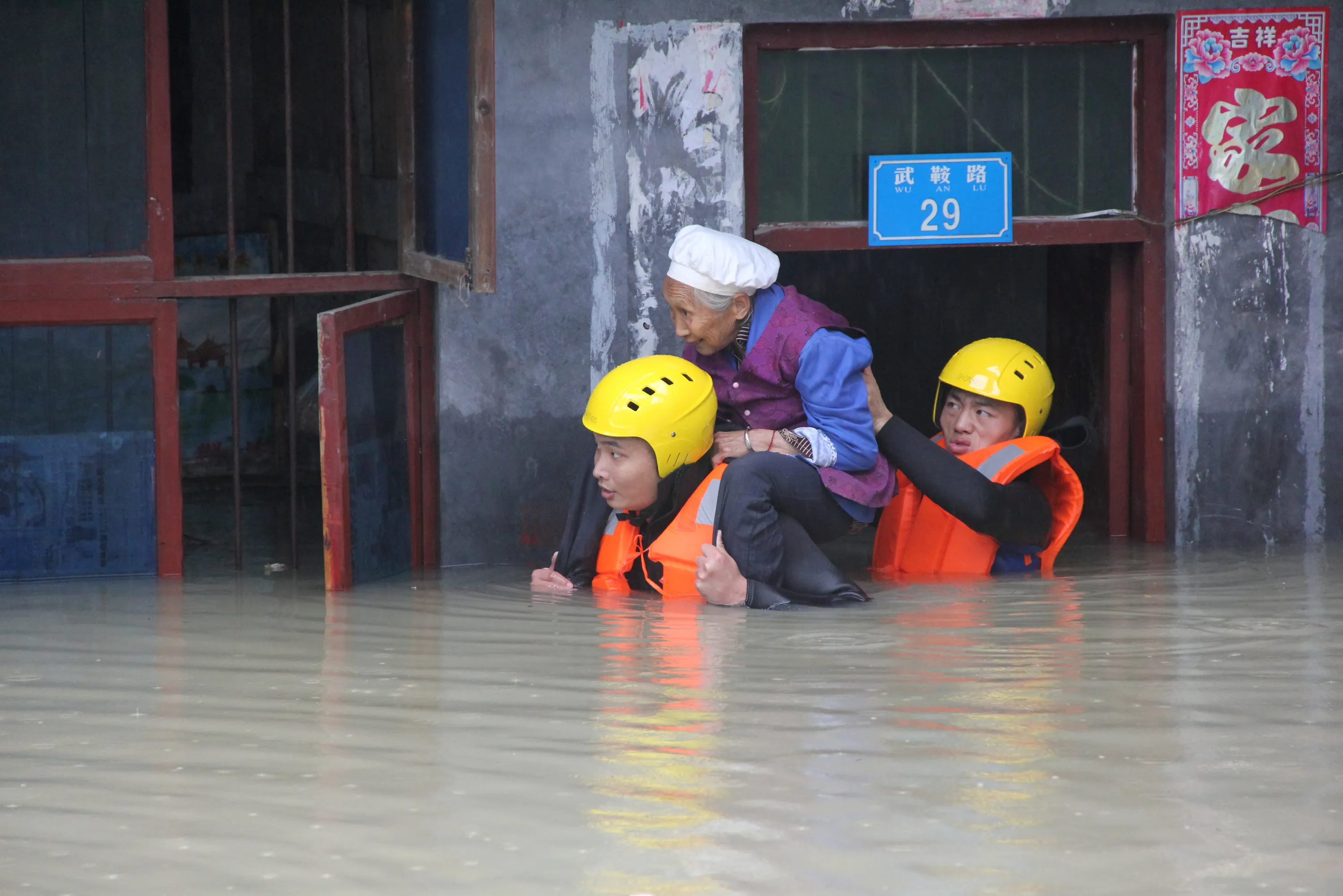 Rescuers save a resident from a flooded building in Chongqing, China, June 28, 2016. (Photo by Reuters/Stringer)