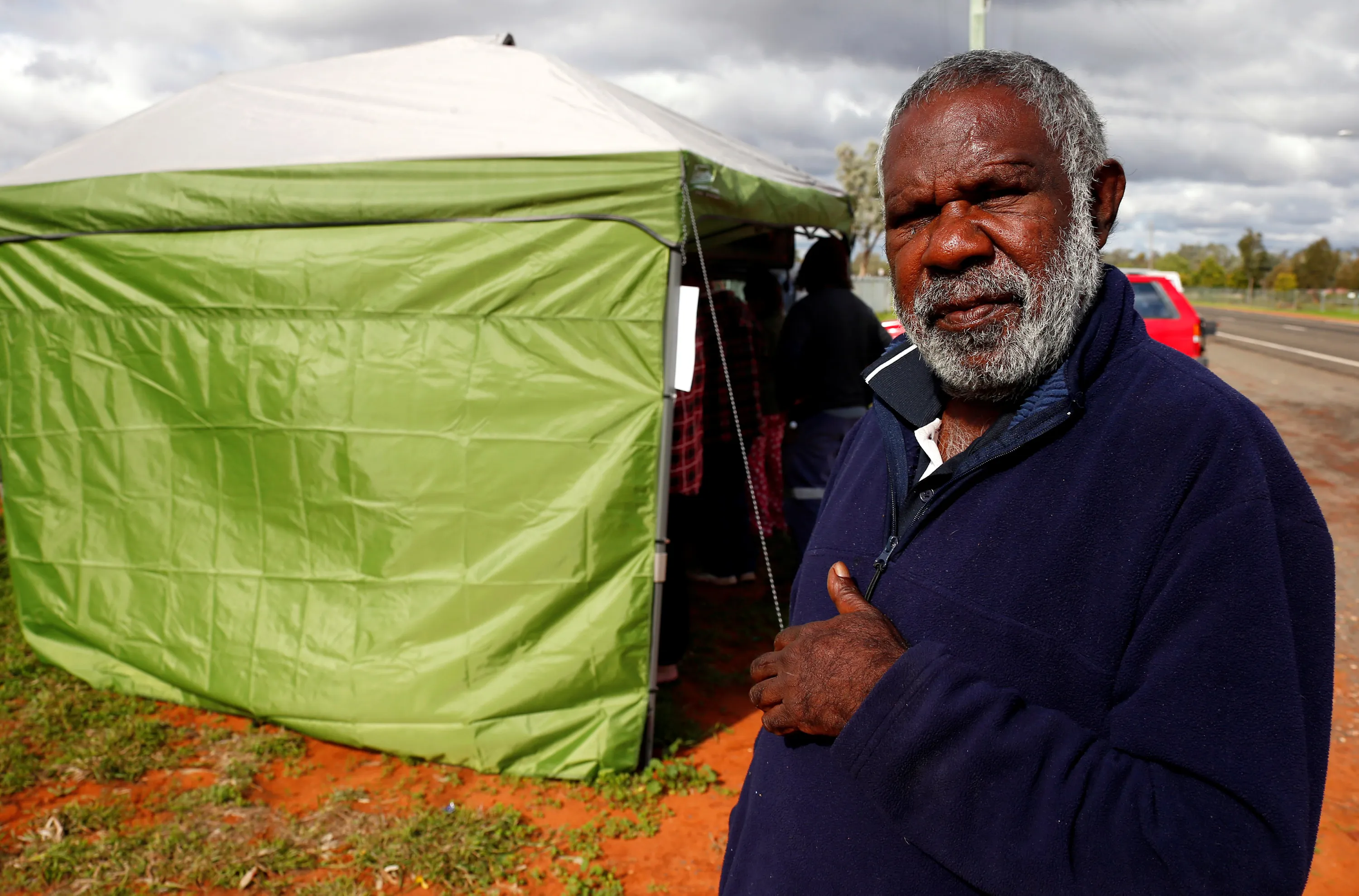 Gordon Sullivan, from a local Aboriginal community, poses near a remote voting station after he voted in the western New South Wales outback town of Enngonia, Australia, June 22, 2016. (Photo by David Gray/Reuters)