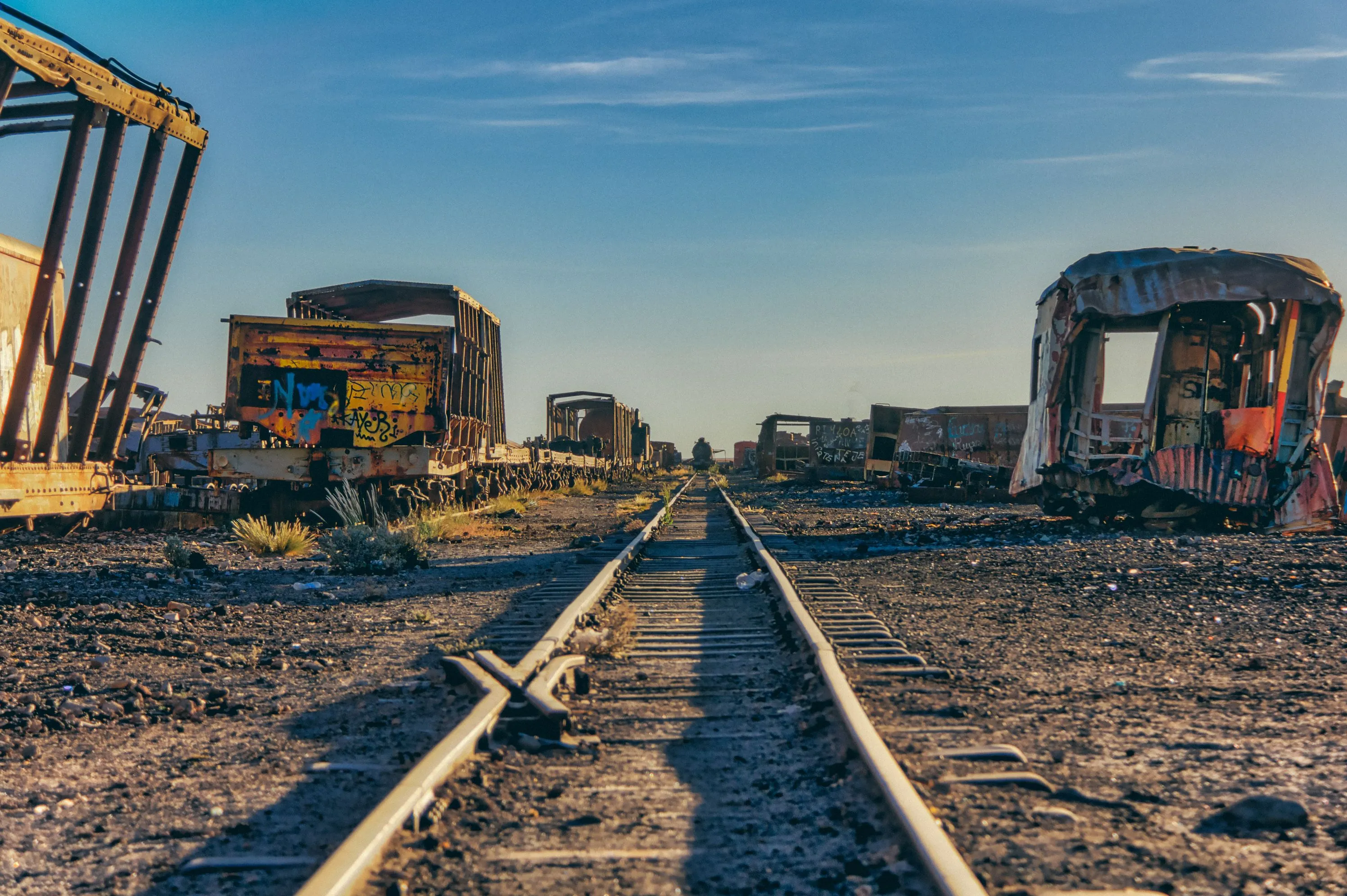 Rusting rail cars and train skeletons are pictured against striking skies. Staring ventured out to explore the area a few hours before sunset. (Photo by Chris Staring/Rex Features/Shutterstock)