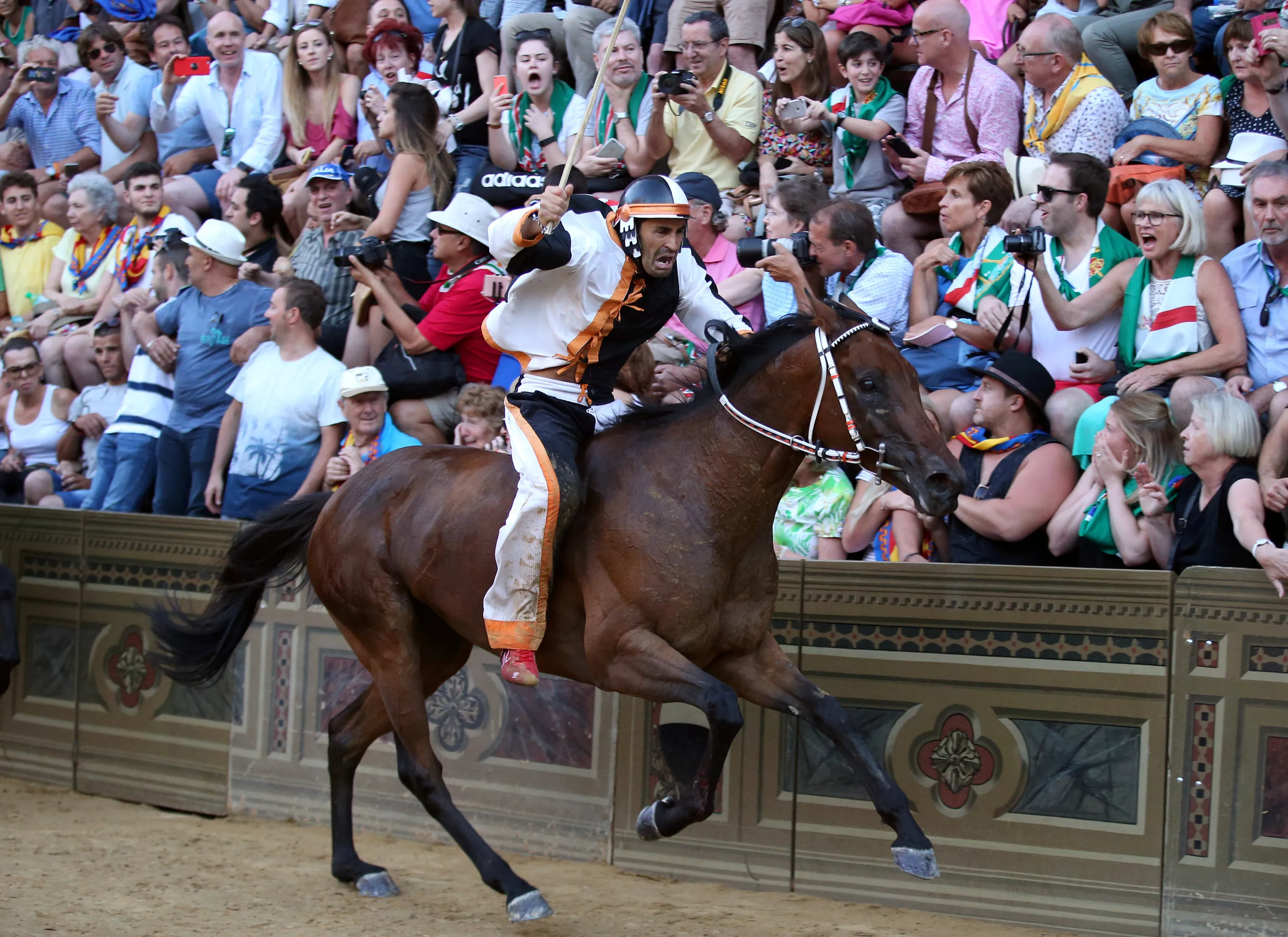 Jockey Jonatan Bartoletti of “Lupa” or (Wolf) parish rides to wins in the Palio horse race in Siena, Italy, July 2, 2016. (Photo by Stefano Rellandini/Reuters)
