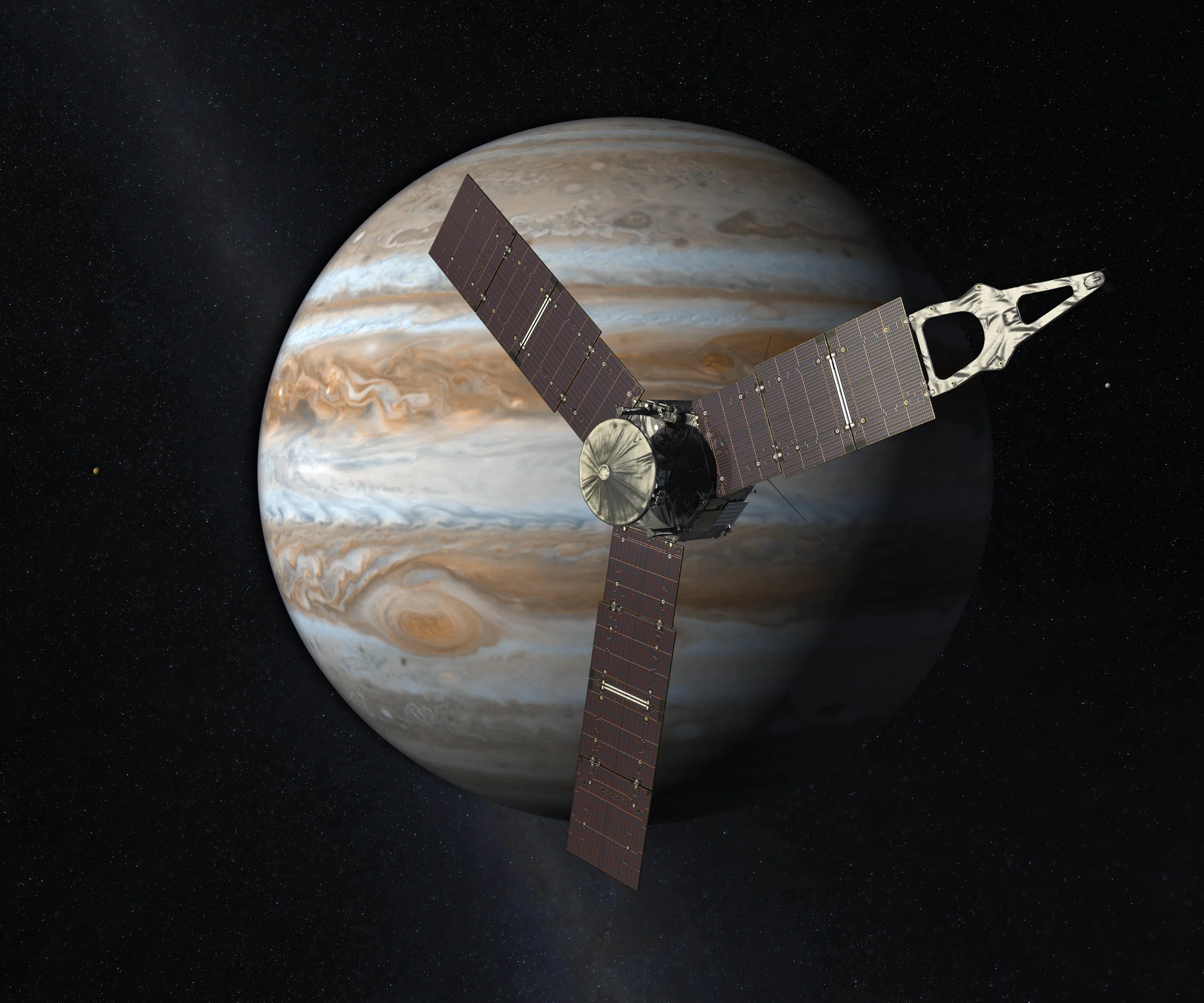 This artist's rendering provided by NASA and JPL-Caltech shows the Juno spacecraft above the planet Jupiter. Five years after its launch from Earth, Juno is scheduled to go into orbit around the gas giant on Monday, July 4, 2016. (Photo by NASA/JPL-Caltech via AP Photo)