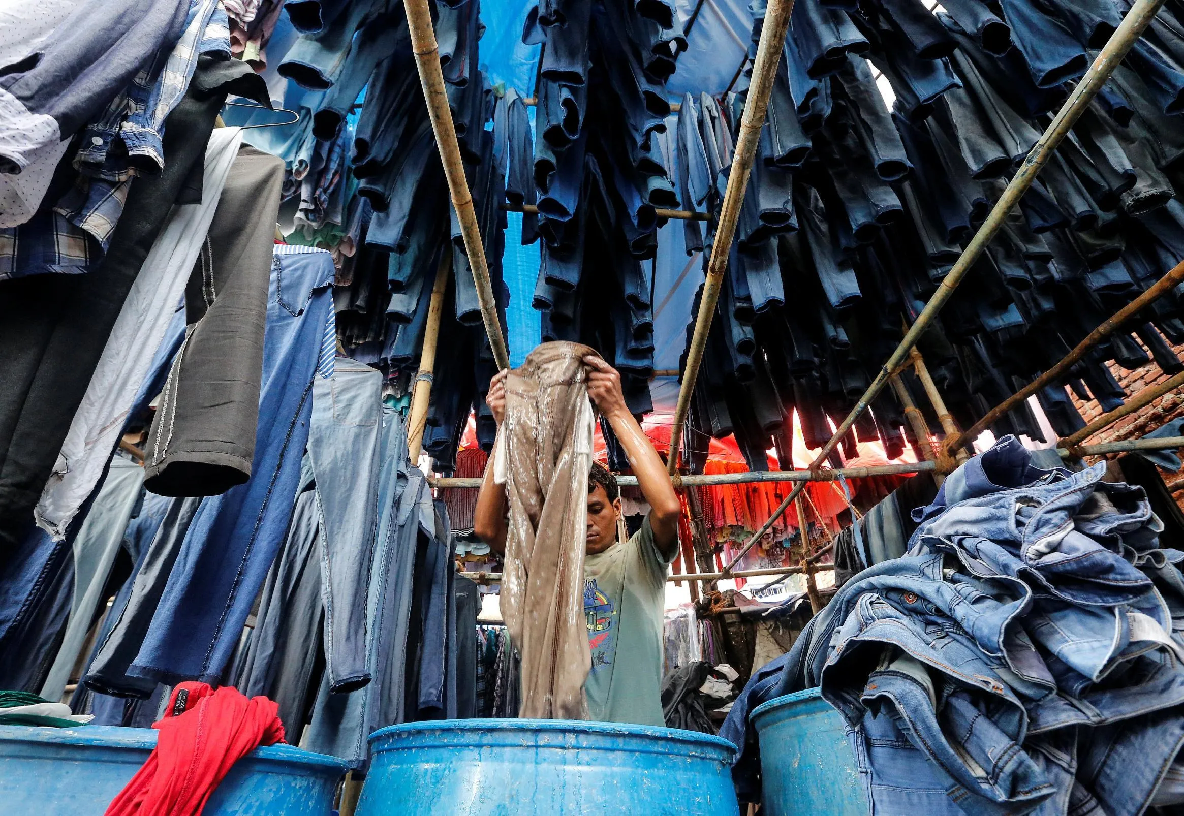 A man washes used trousers before they are sold in a second-hand clothing market in Mumbai, India, June 29, 2016. (Photo by Shailesh Andrade/Reuters)