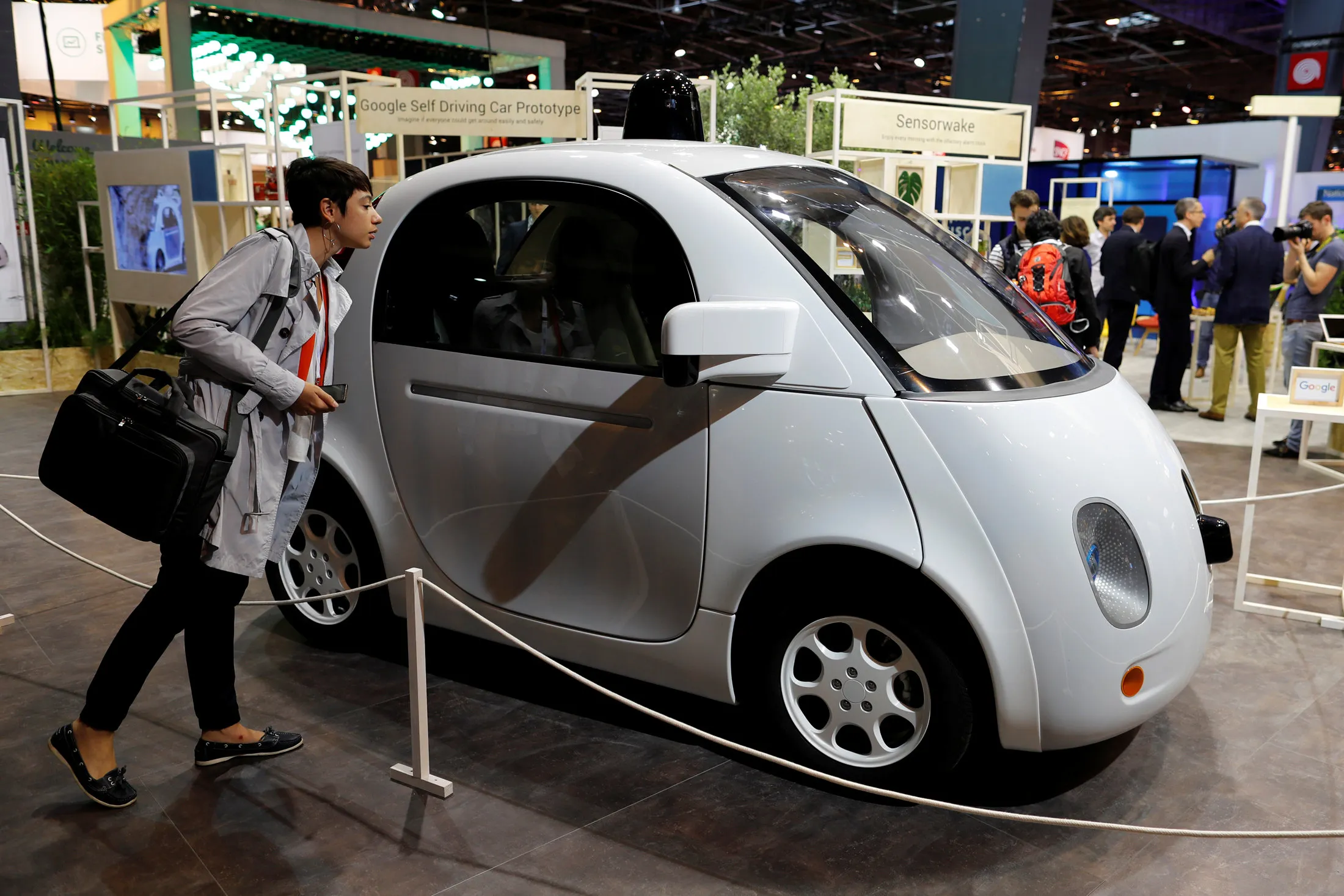 A visitor looks at a self-driving car by Google at the Viva Technology event in Paris, France, June 30, 2016. (Photo by Benoit Tessier/Reuters)