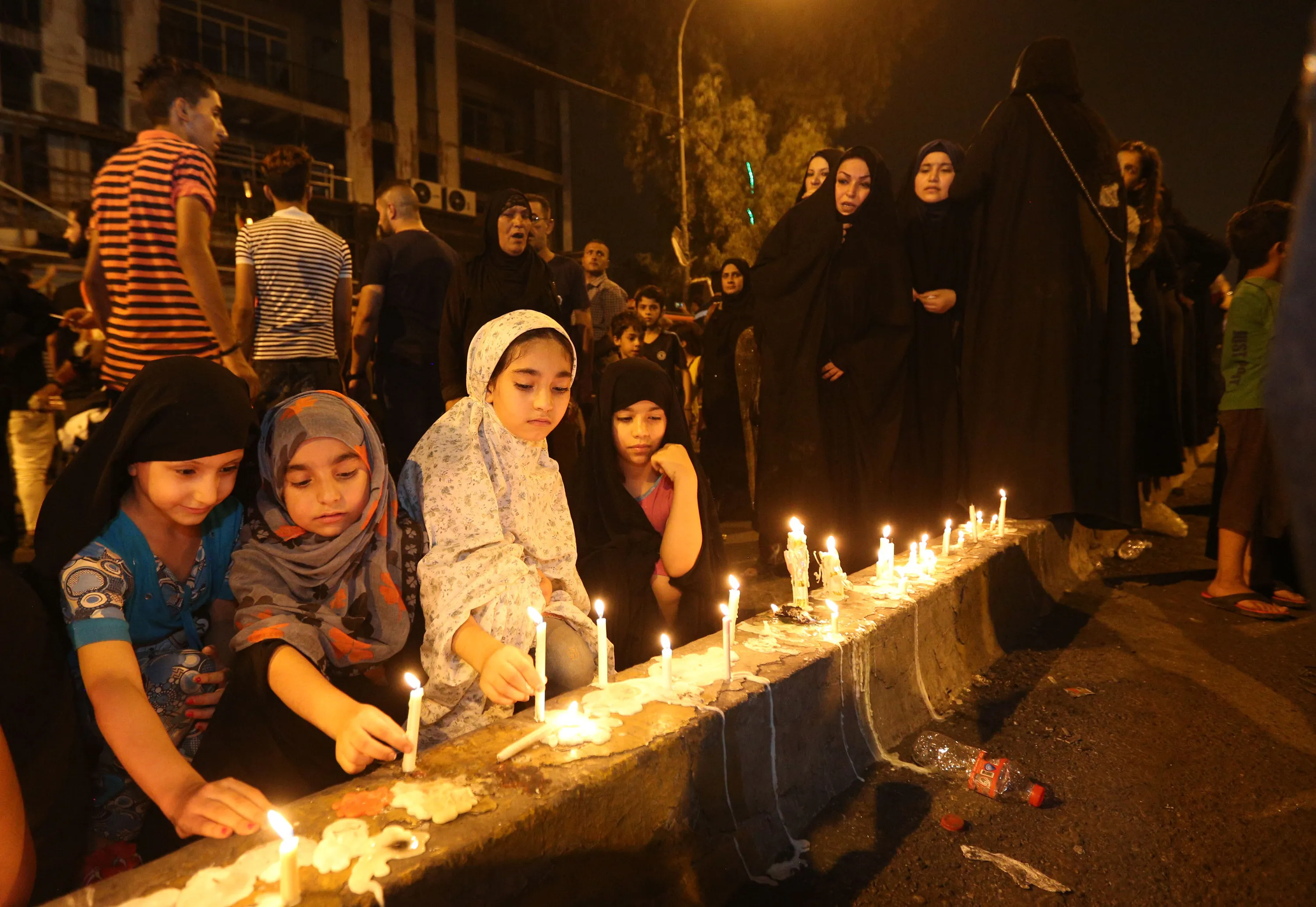 People light candles at the scene of a massive car bomb attack in Karada, a busy shopping district where people were shopping for the upcoming Eid al-Fitr holiday, in the center of Baghdad, Iraq, Monday, July 4, 2016. (Photo by Hadi Mizban/AP Photo)