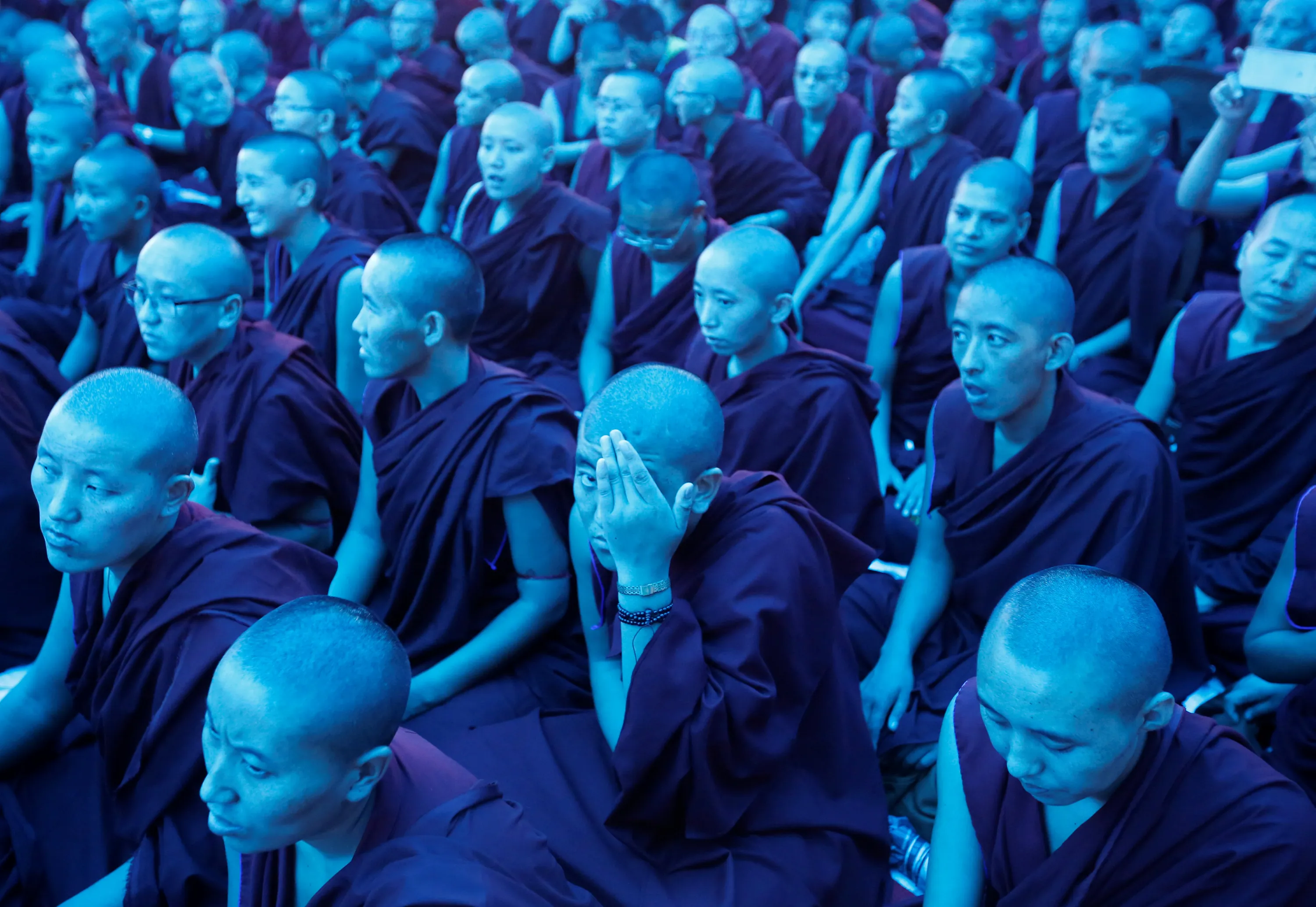 Tibetan nuns take part in a function organized to mark the birthday celebration of Dalai Lama in Kathmandu, Nepal, July 6, 2016. (Photo by Navesh Chitrakar/Reuters)