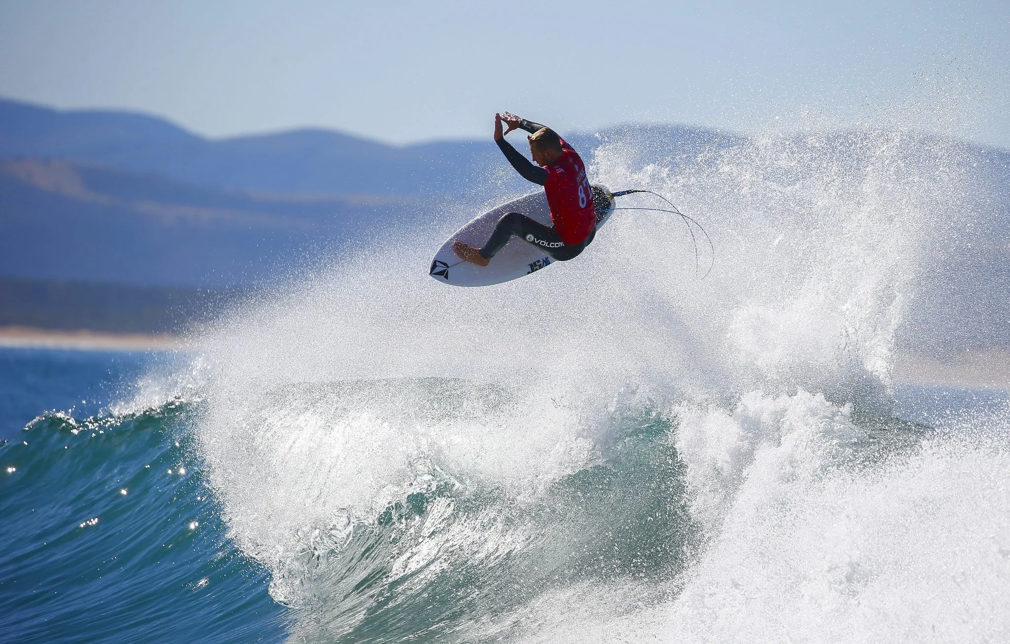 Dusty Payne from the US surfs during the Samsung Galaxy World Surf League (WSL) Championship Tour J-Bay Open in Jeffreys Bay, South Africa 07 July 2016. The coastal town of Jeffreys bay is transformed into a surf festival during stop number six on the 2016 Samsung Galaxy World Surf League (WSL) Championship Tour (CT) where the WSL's top 34 surfers comptete on one of the tours longest and best right hand point breaks in Jeffreys Bay. (Photo by Nic Bothma/EPA)