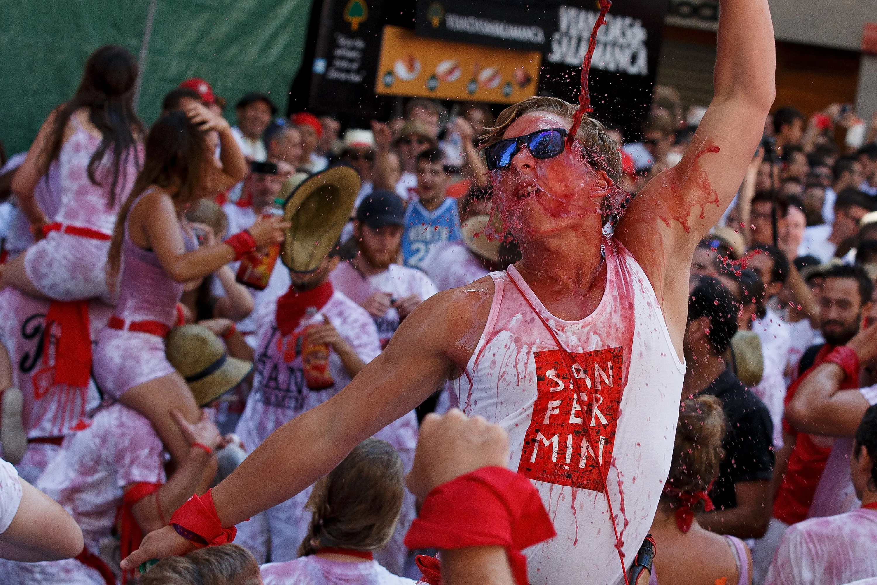 Revellers enjoy the atmosphere during the opening day or “Chupinazo” of the San Fermin Running of the Bulls fiesta on August 6, 2016 in Pamplona, Spain. (Photo by Pablo Blazquez Dominguez/Getty Images)