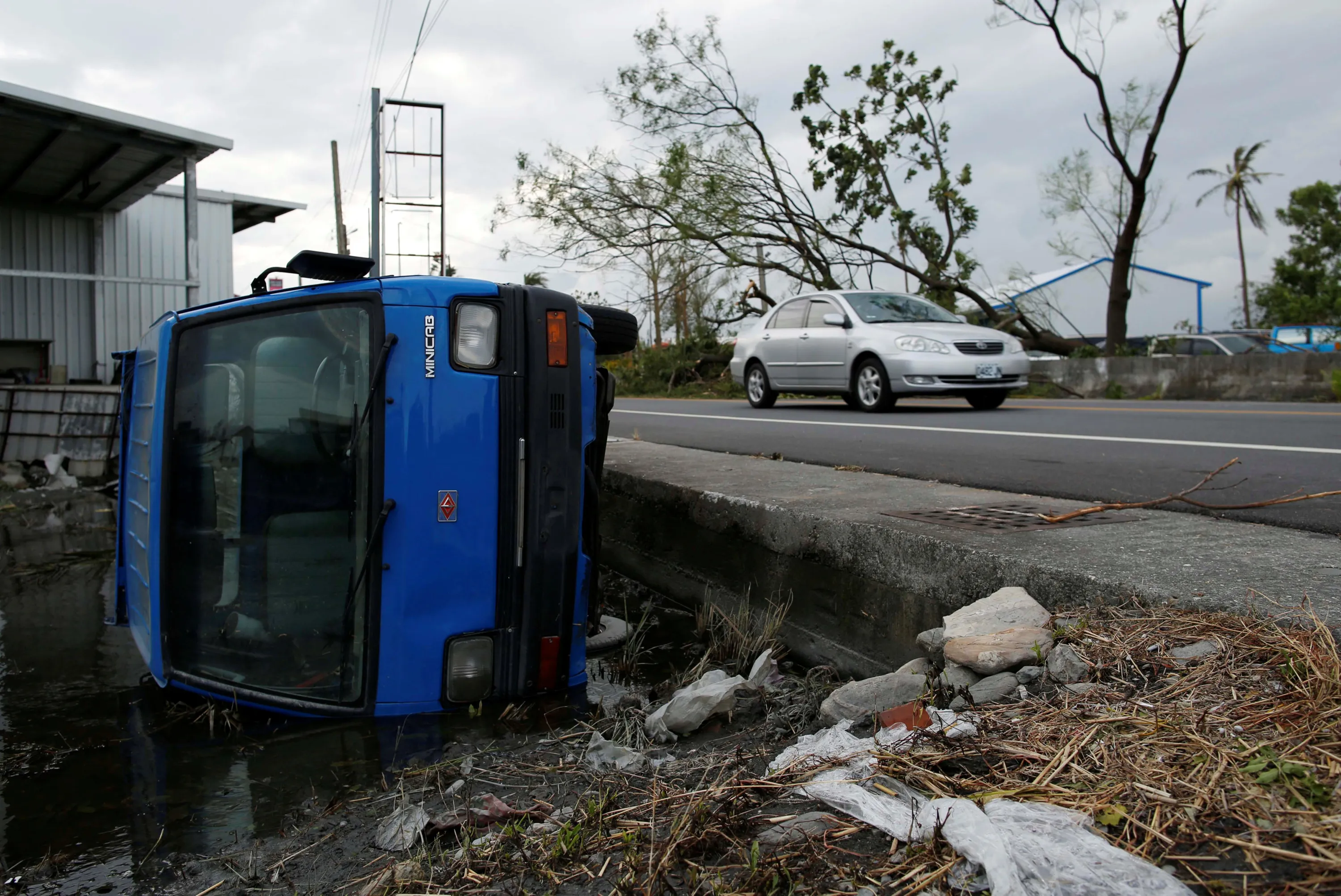 A vehicle tipped over by strong wind from Typhoon Nepartak is seen in Taitung, Taiwan July 9, 2016. (Photo by Tyrone Siu/Reuters)