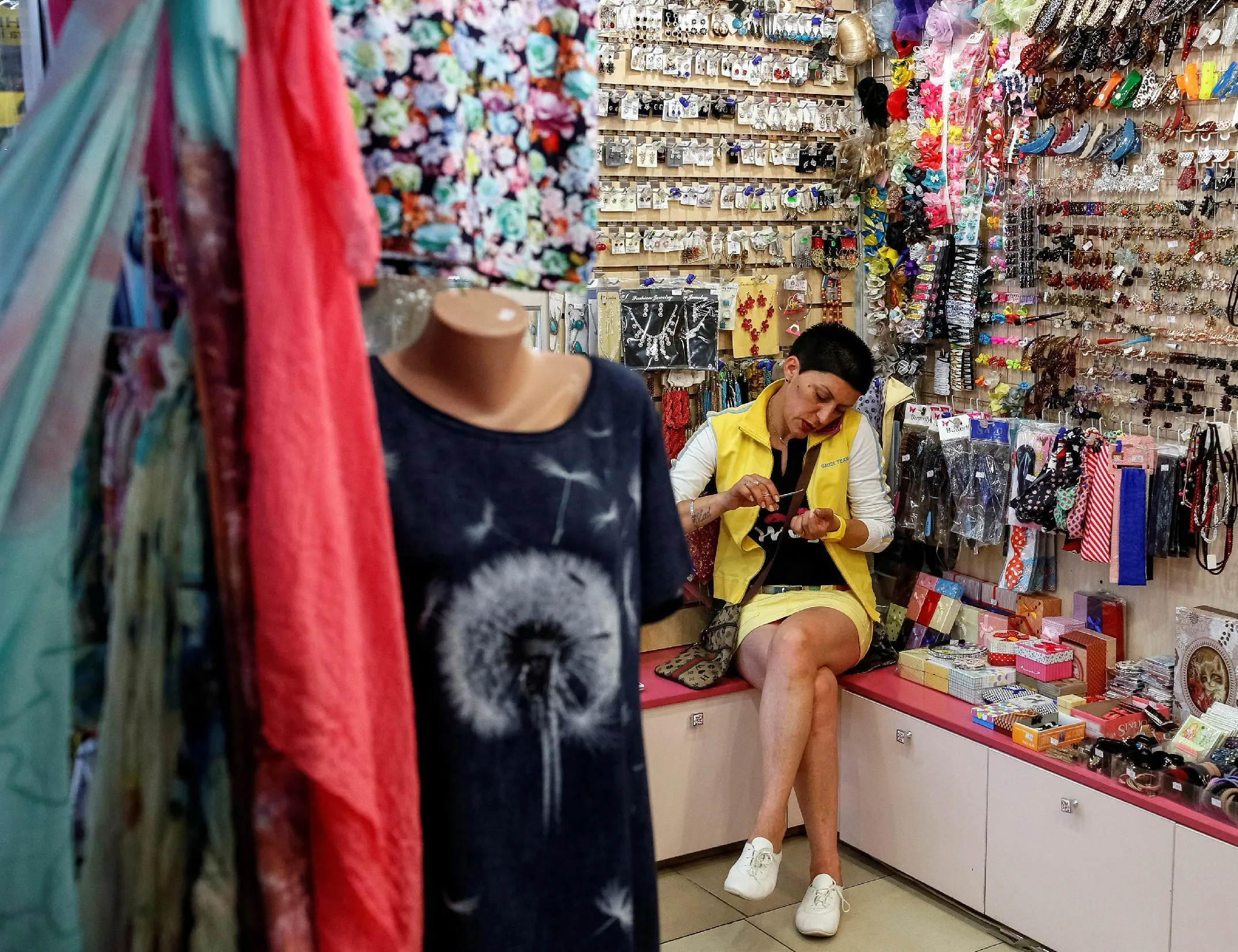 A vendor files her nails as she waits for customers in an underpass store in central Kiev, Ukraine, July 5, 2016. (Photo by Gleb Garanich/Reuters)