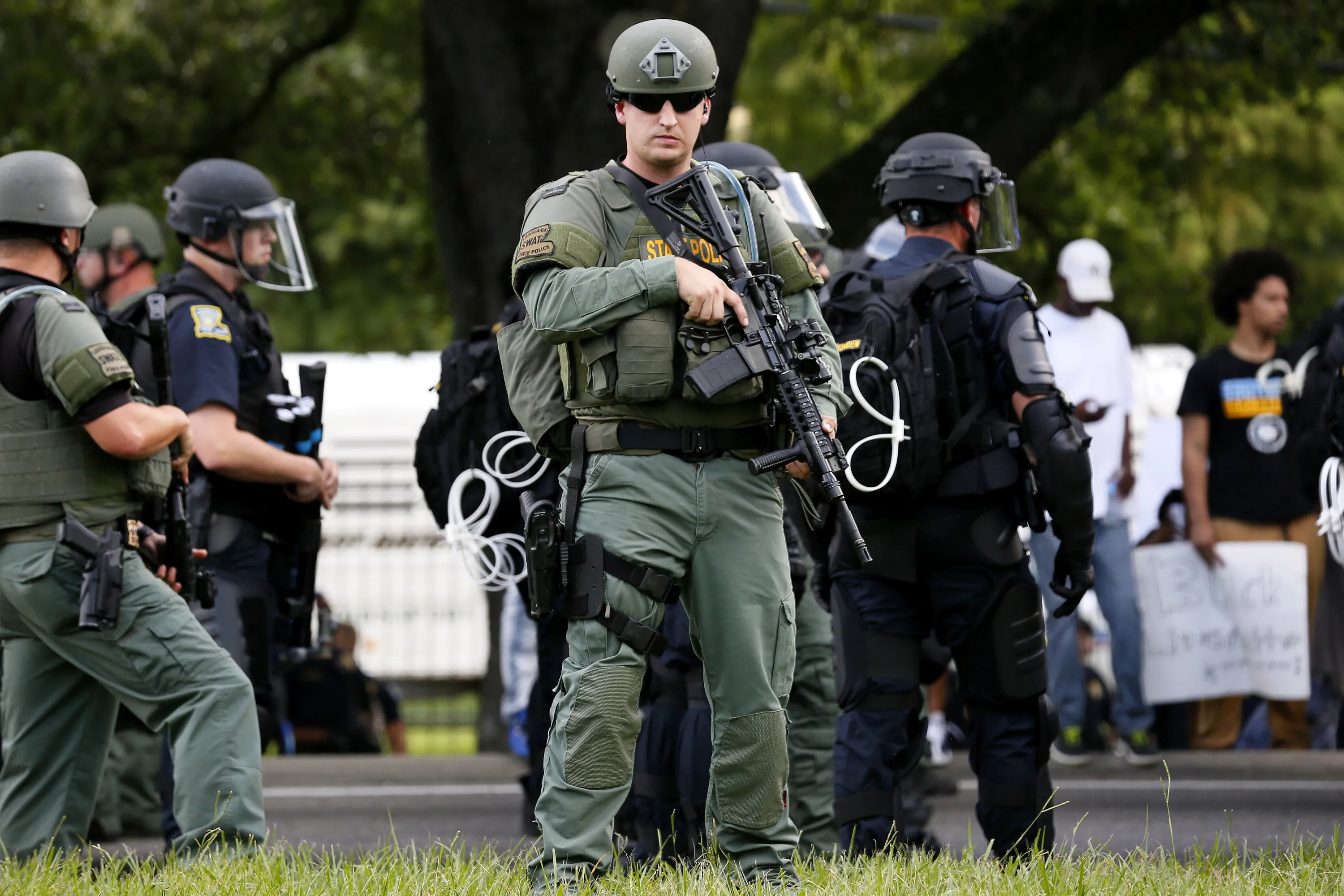 A police officer is seen near the headquarters of the Baton Rouge Police Department in Baton Rouge, Louisiana, U.S. July 9, 2016. (Photo by Jonathan Bachman/Reuters)