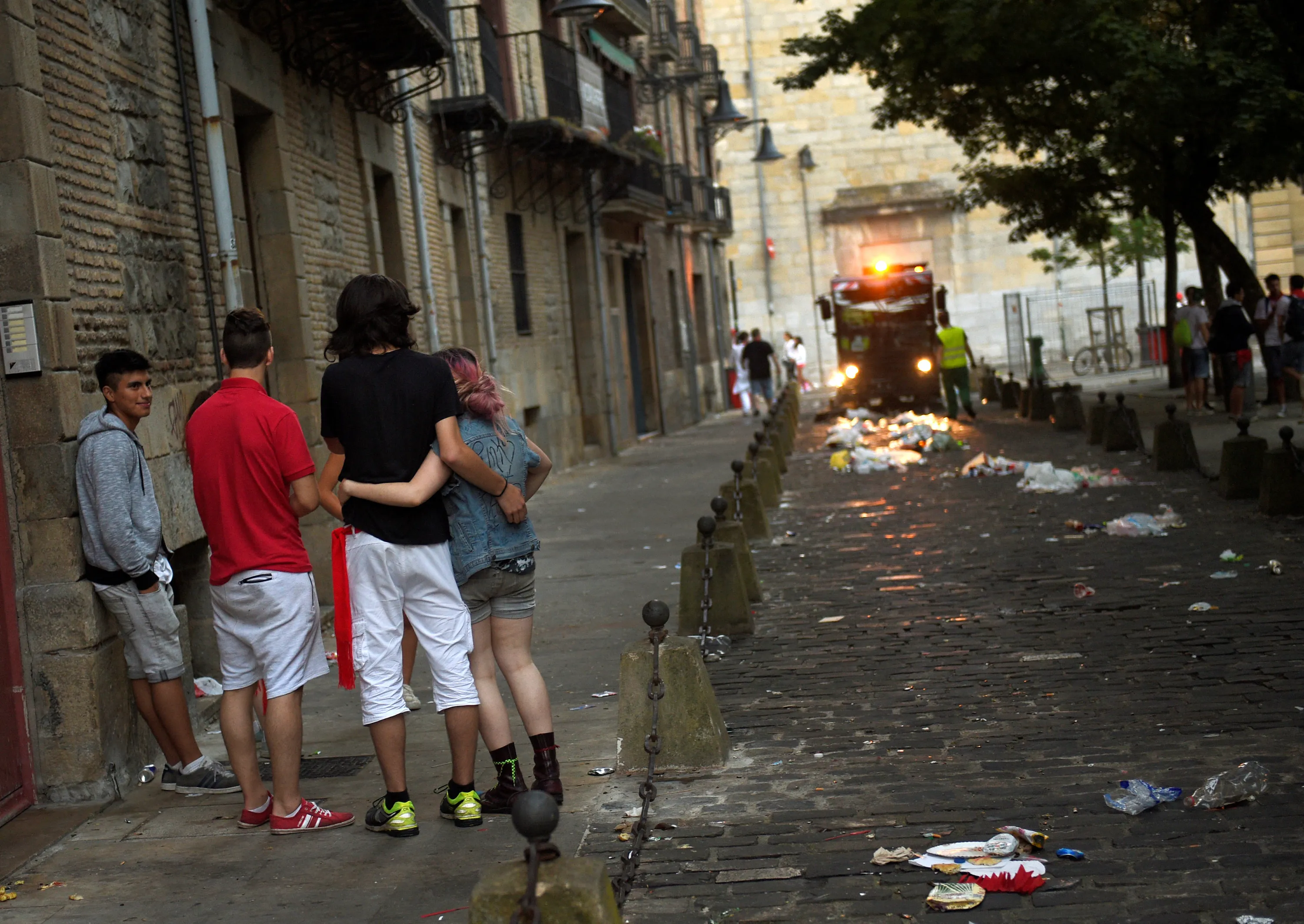A couple embraces at the San Fermin festival in Pamplona, northern Spain, July 10, 2016. (Photo by Eloy Alonso/Reuters)