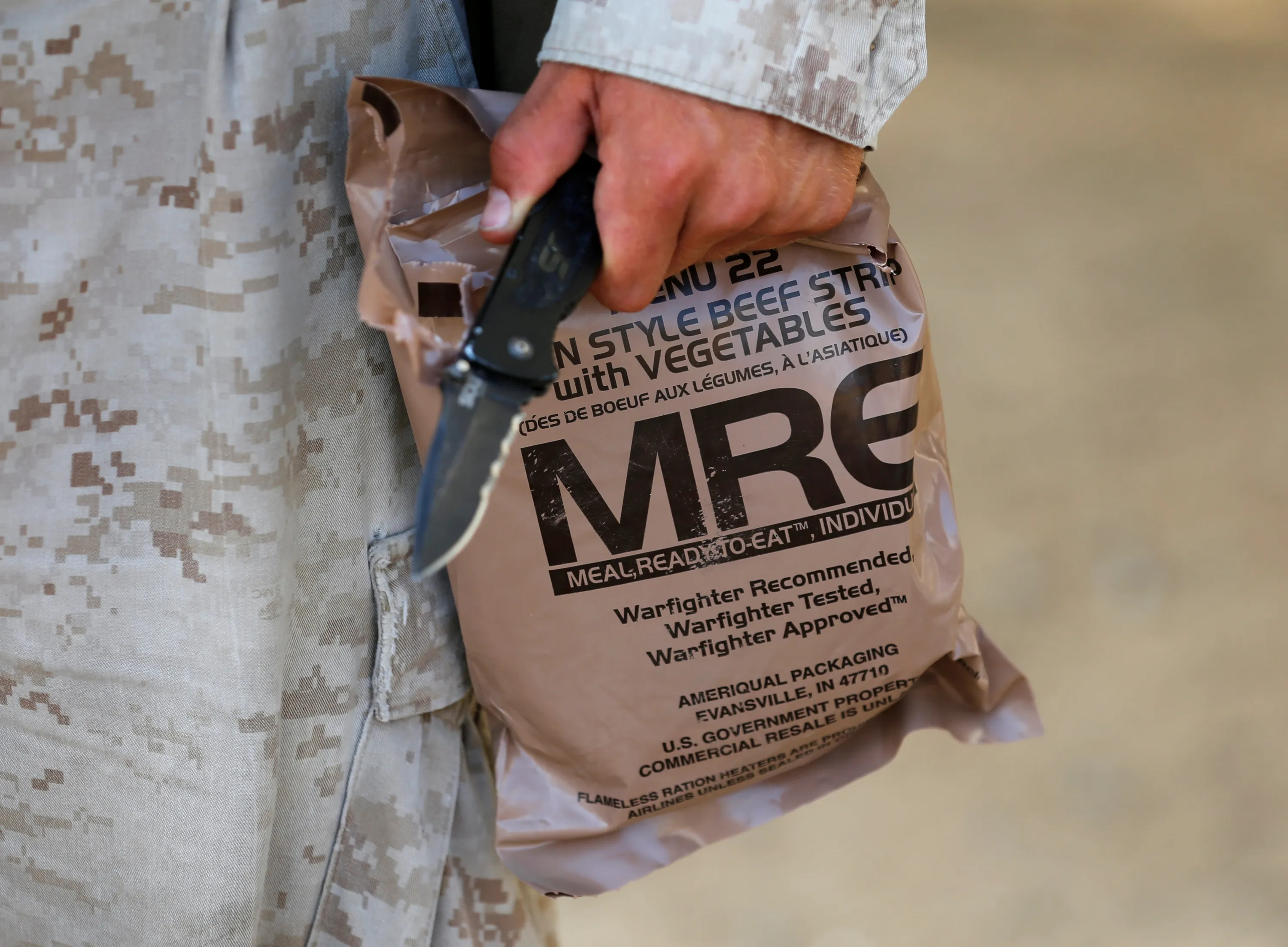A U.S. Marine eats breakfast from an MRE ration during training as part of Rim of the Pacific (RIMPAC) 2016 exercise held at Camp Pendleton, California United States, July 13, 2016. (Photo by Mike Blake/Reuters)