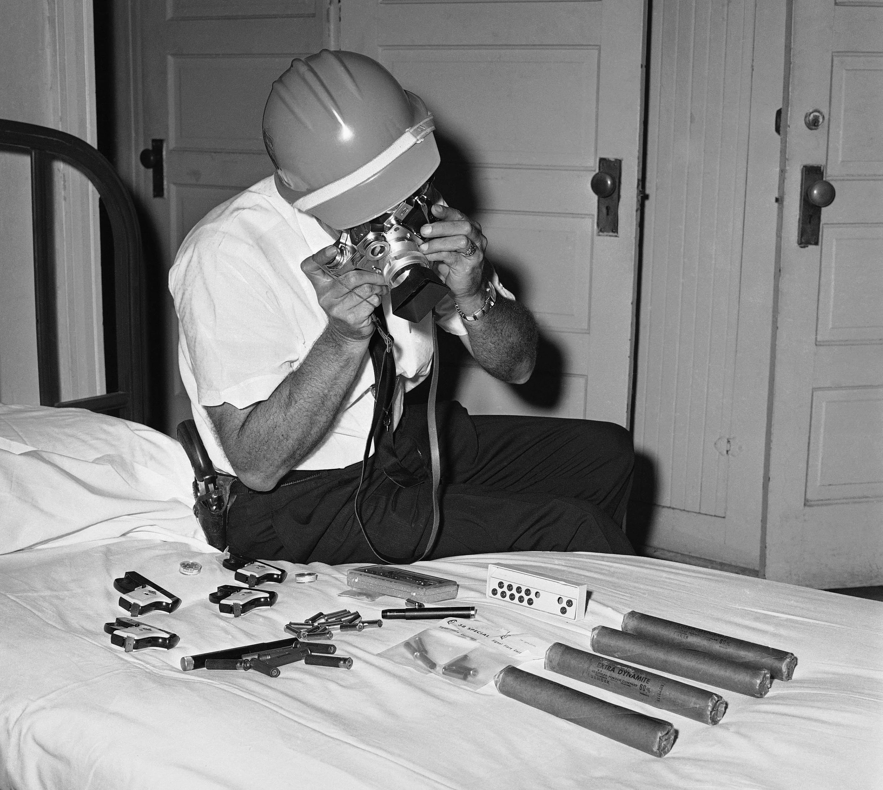 In this June 10, 1963 file photo, Lt. W.B. Painter, a state investigator, photographs a cache of pistols, dynamite, pocket tear gas guns, and other weapons confiscated in Tuscaloosa, Ala., a day before the integration of the University of Alabama. (Photo by AP Photo)