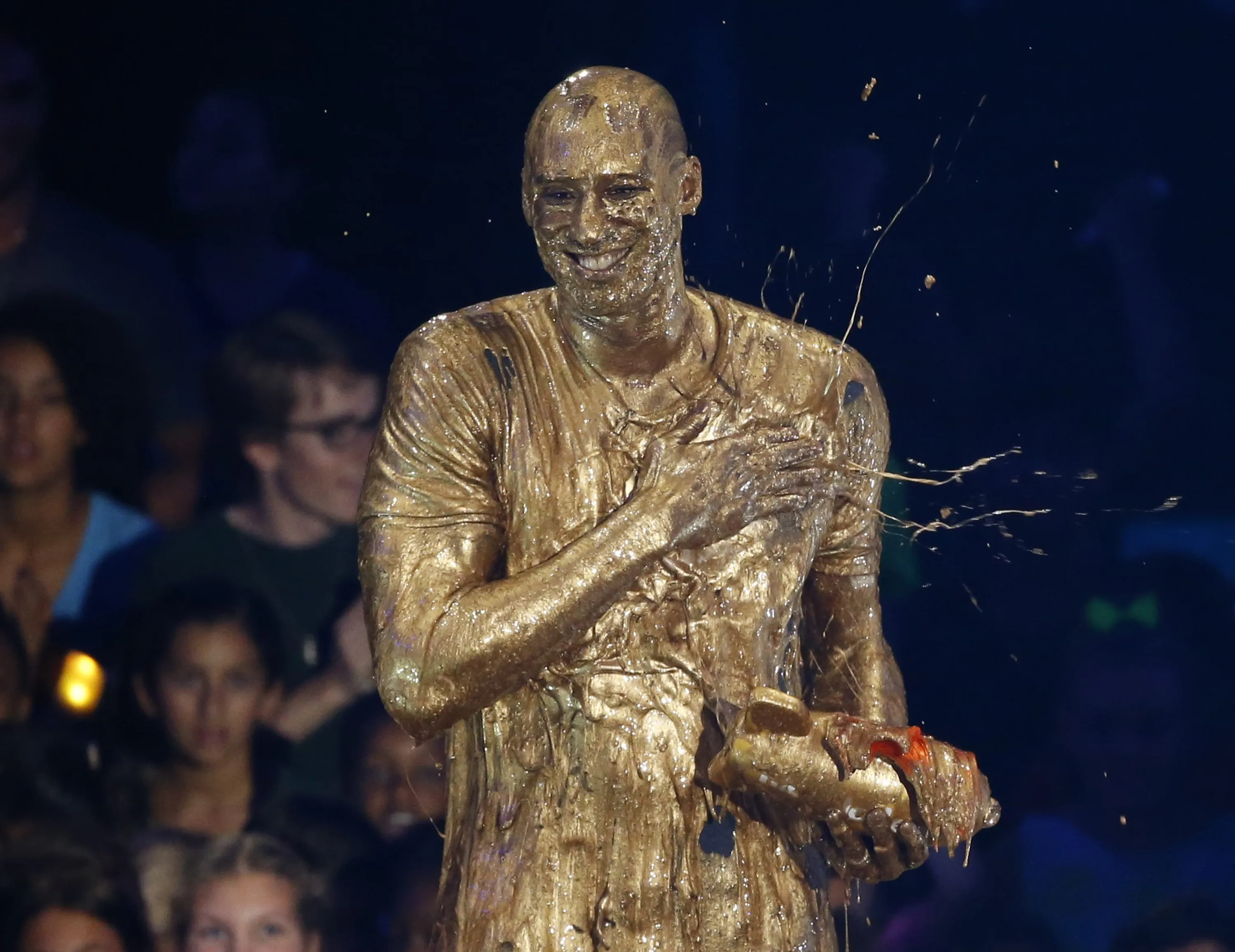 Retired NBA basketball player Kobe Bryant reacts after he was “slimed” after accepting the “Legend” award at the Kids Choice Sport 2016 awards in Los Angeles, California U.S., July 14, 2016. (Photo by Mario Anzuoni/Reuters)