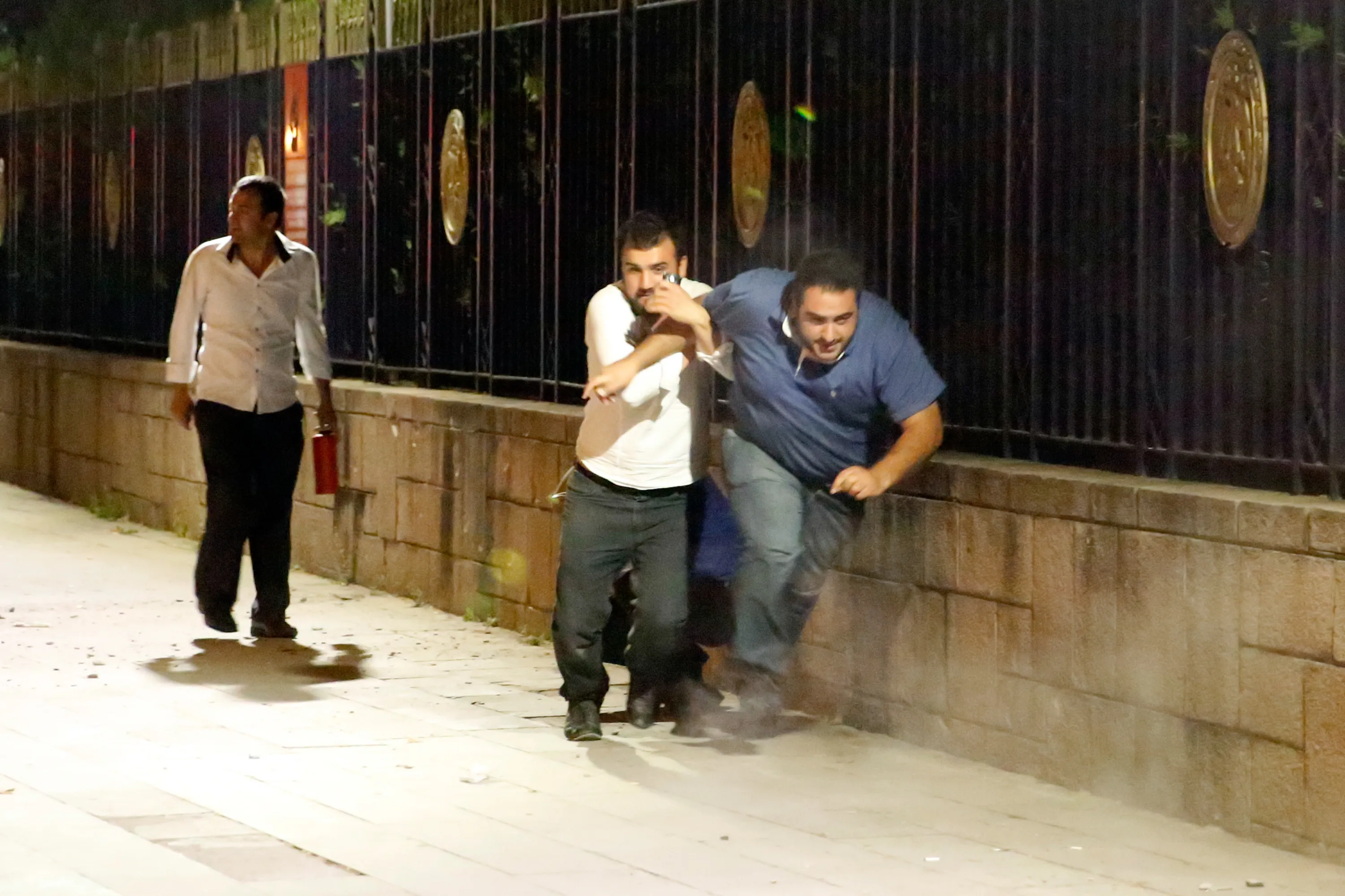 People run to escape from the clashes in Ankara, July 16, 2016, Turkey. (Photo by Erhan Ortac/Getty Images)