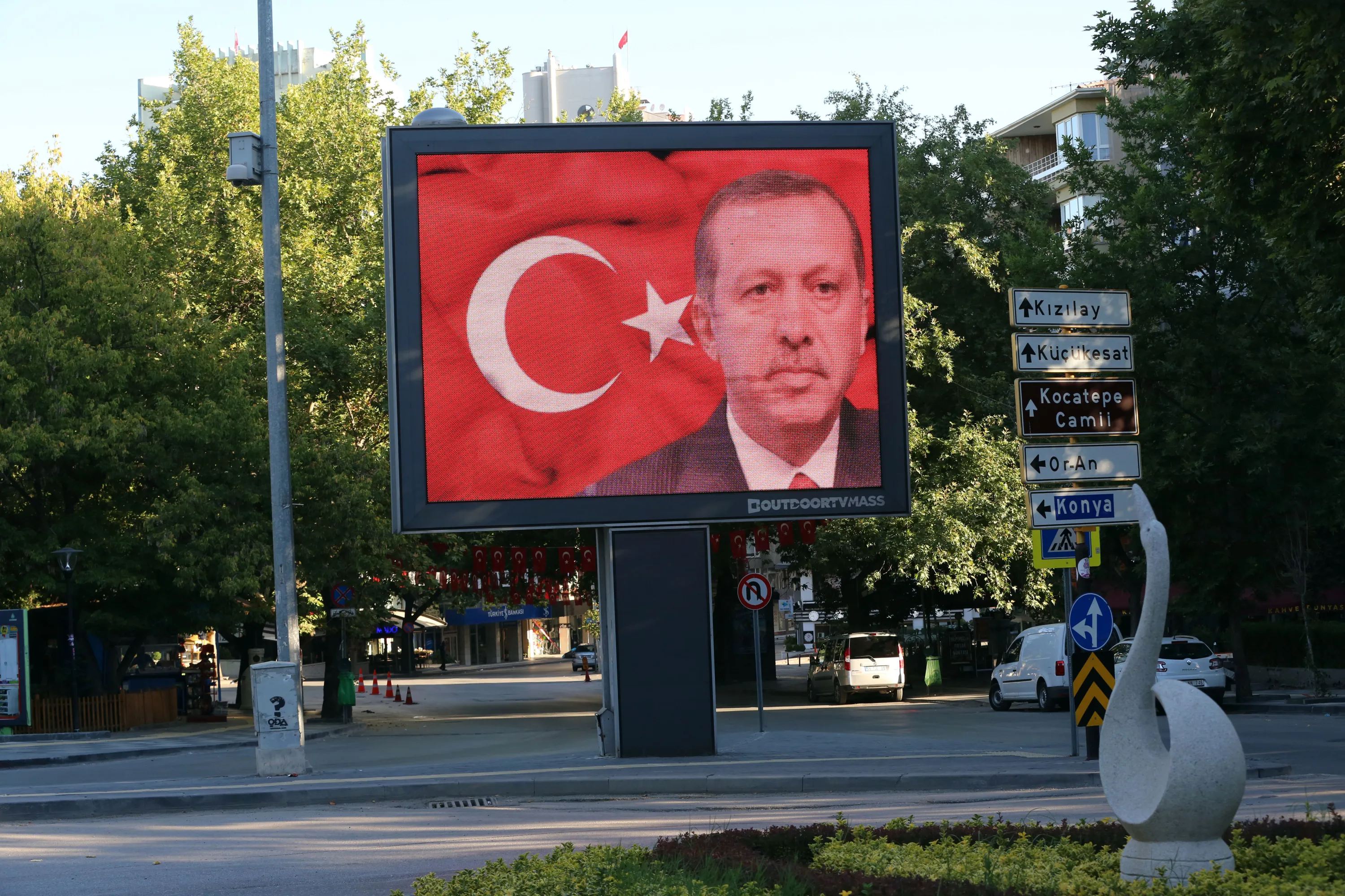 A portrait of Turkey's President Recep Tayyip Erdogan appears on a billboard in Tunali Hilmi Street in Ankara, Turkey, Saturday, July 16, 2016. Forces loyal to Turkey's President Recep Tayyip Erdogan quashed a coup attempt in a night of explosions, air battles and gunfire that left dozens dead Saturday. Authorities arrested thousands of people as President Recep Tayyip Erdogan vowed those responsible “will pay a heavy price for their treason”. (Photo by Burhan Ozbilici/AP Photo)