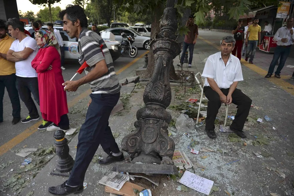 People sit amid rubble in Ankara, Turkey July 16, 2016. (Photo by Reuters/Stringer)