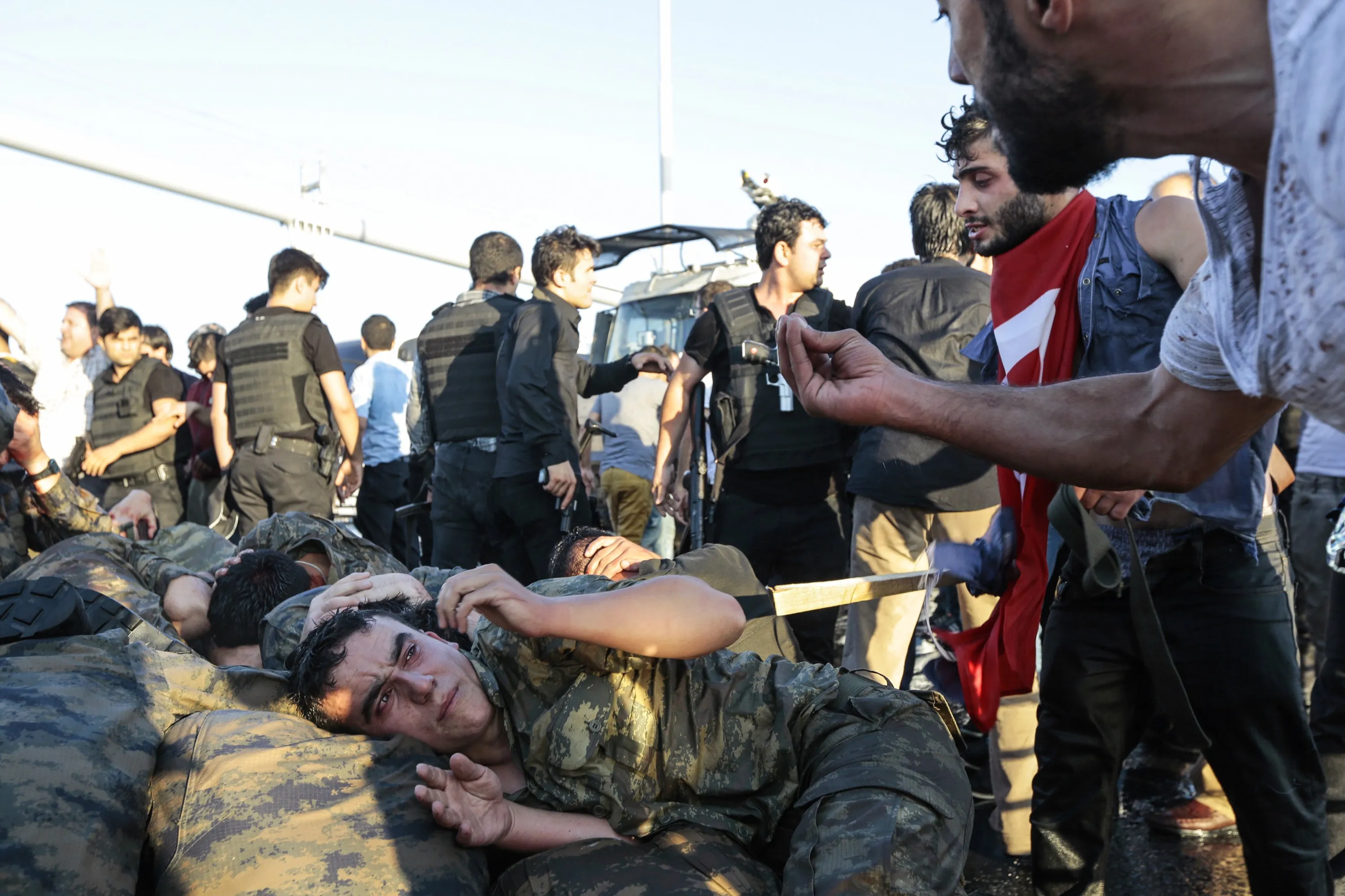 People shout at the soliders involved in the coup attempt who have surrendered on Bosphorus bridge on July 16, 2016 in Instabul, Turkey. (Photo by Gokhan Tan/Getty Images)
