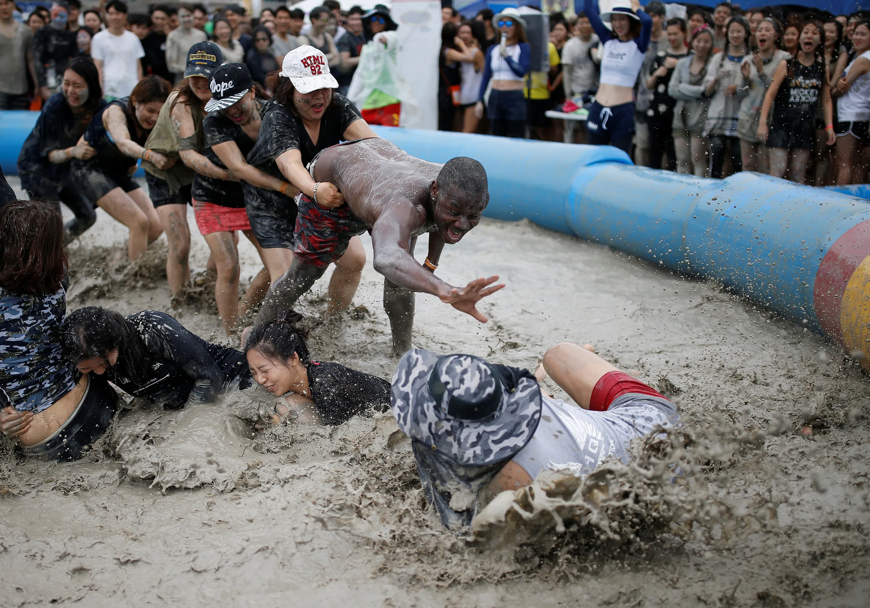 Tourists play in a mud pool during the Boryeong Mud Festival at Daecheon beach in Boryeong, South Korea, July 16, 2016. (Photo by Kim Hong-Ji/Reuters)