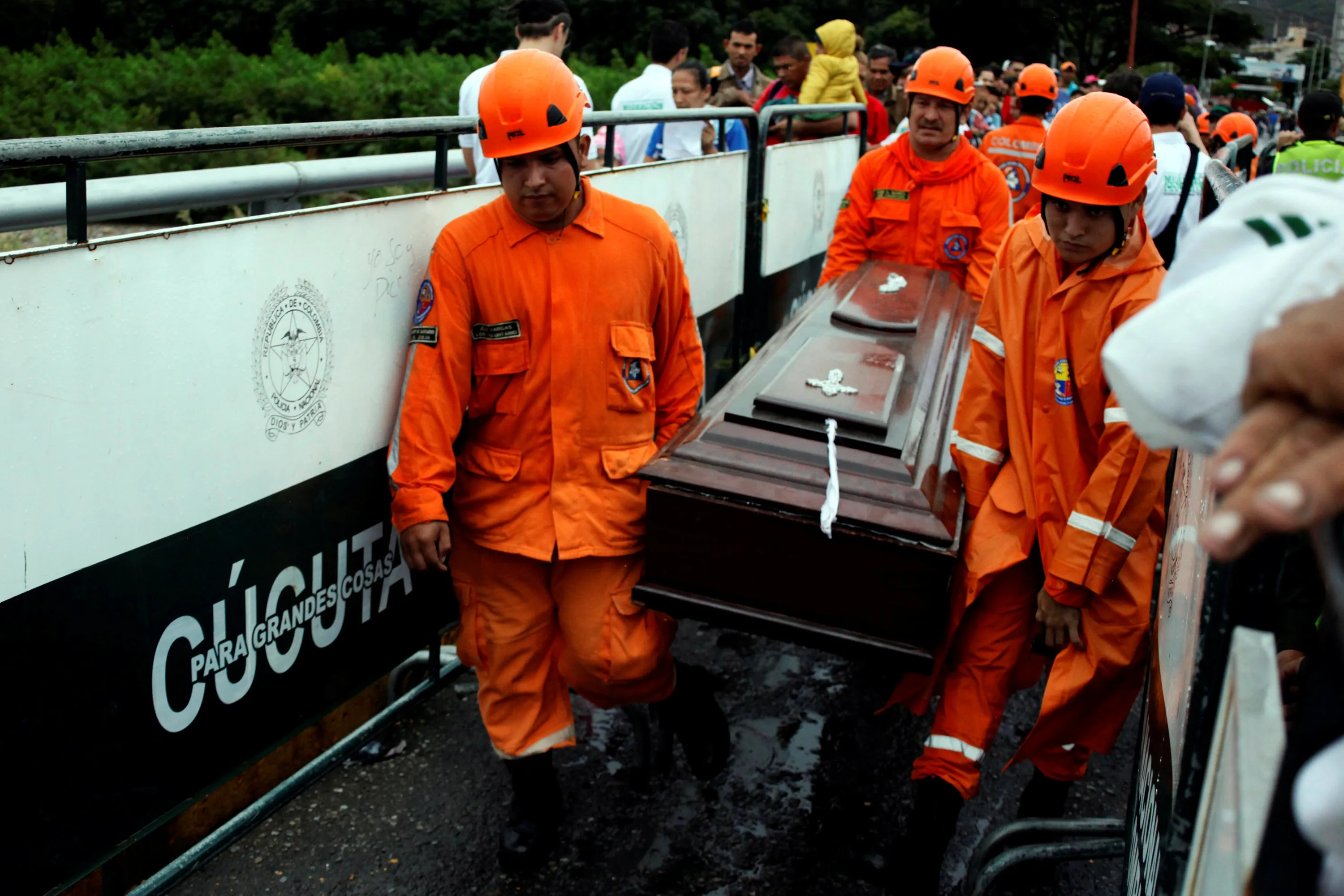 Colombia civil defense carry a coffin as they to cross the Colombian-Venezuelan border in Cucuta, Colombia, July 16, 2016. (Photo by Carlos Eduardo Ramirez/Reuters)