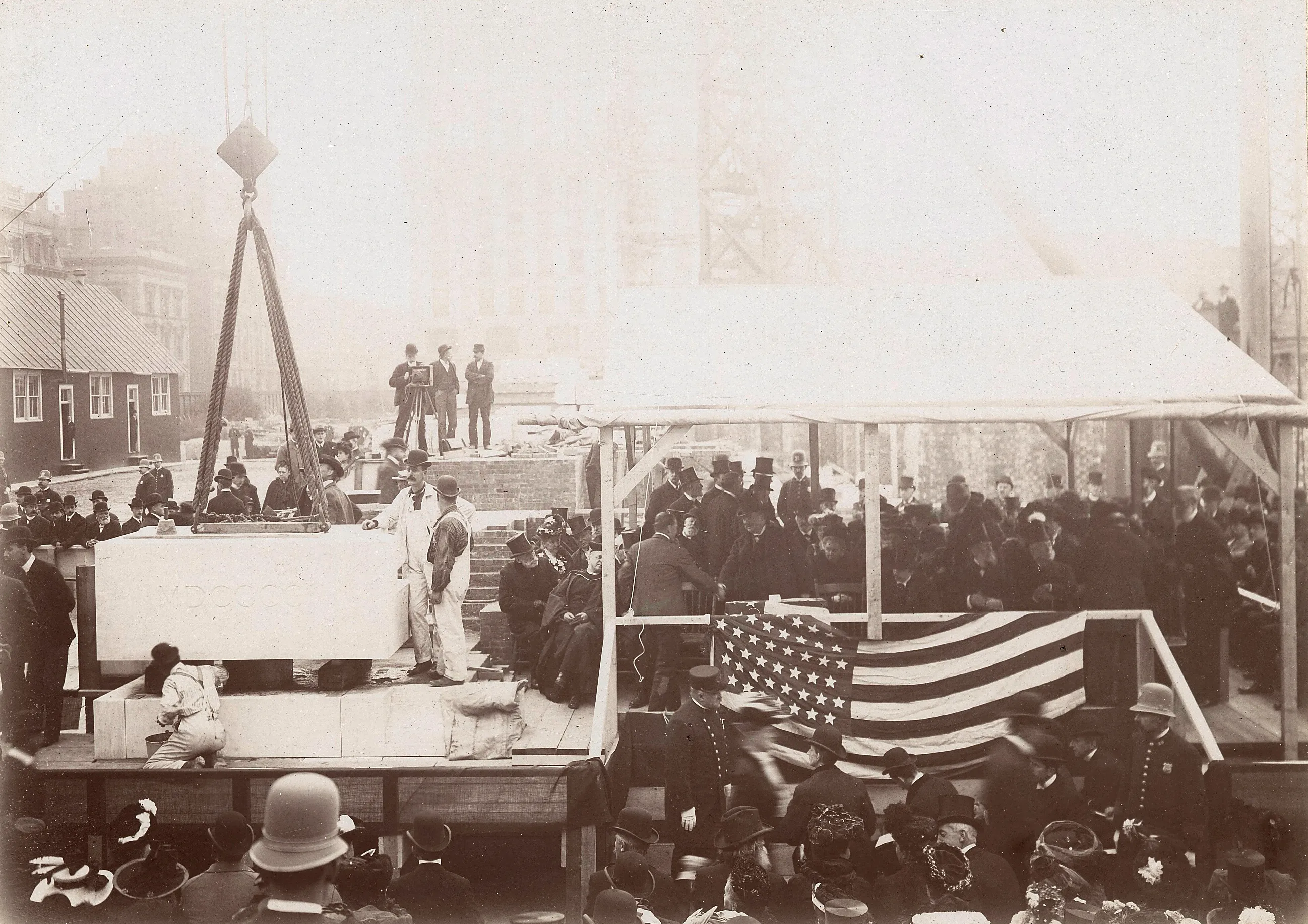 The cornerstone ceremony for the central building of the New York Public Library, 1902. (Photo by New York Public Library)