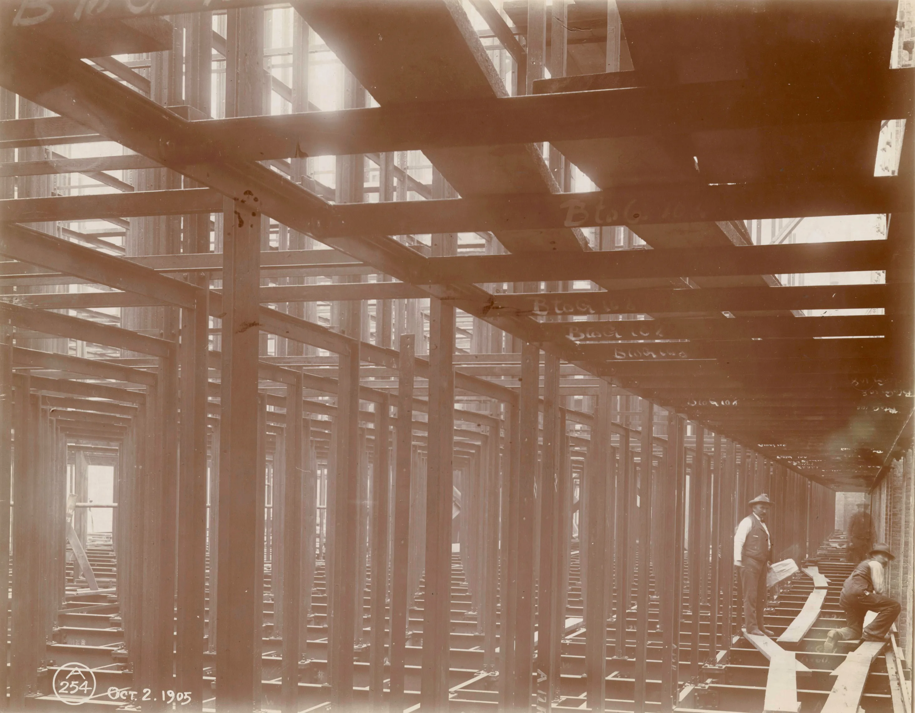 The structural framework of the central building of the New York Public Library, 1905. (Photo by New York Public Library)
