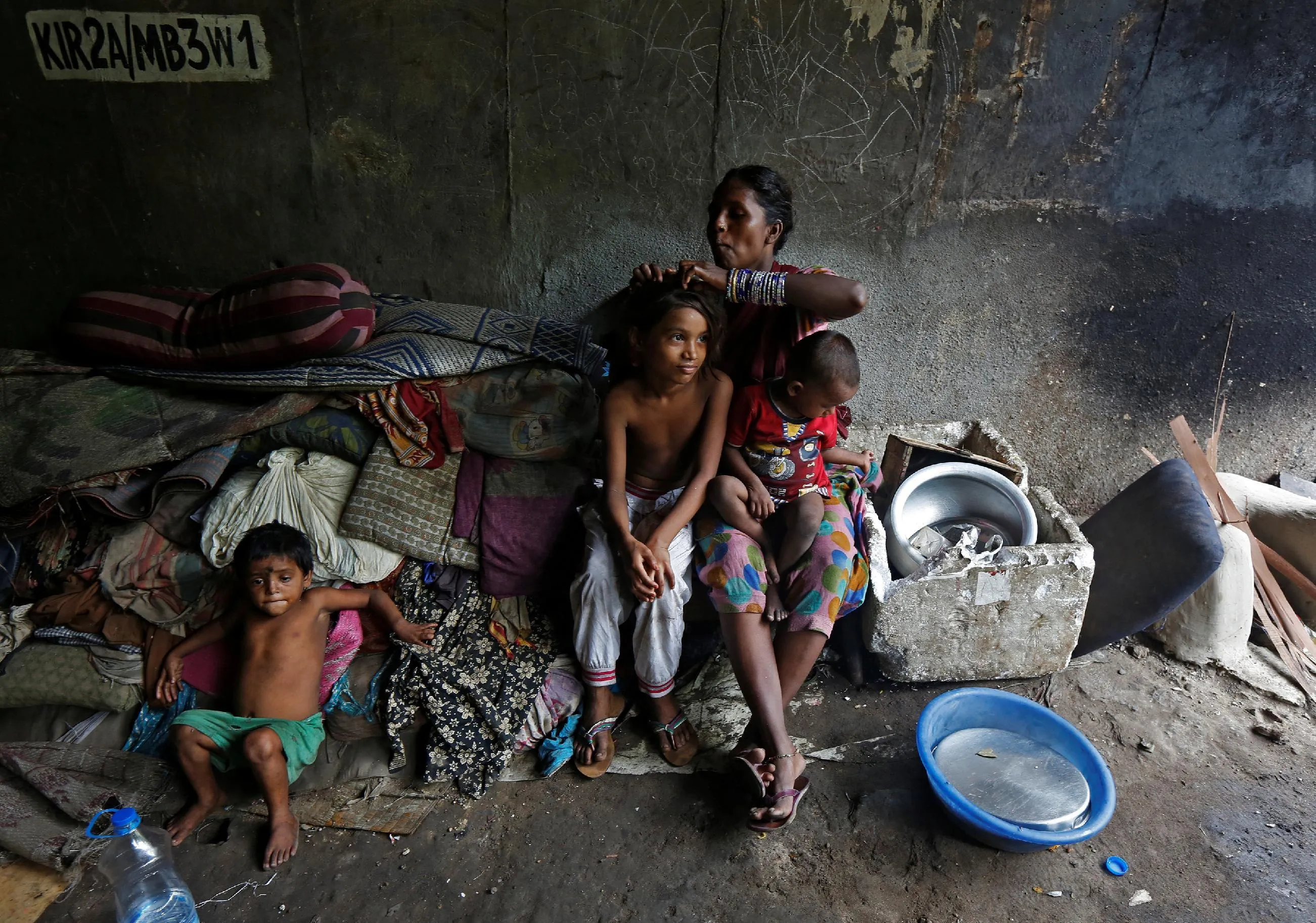 A woman searches for lice in her daughter's hair outside their makeshift home under a flyover in Kolkata, India, July 20, 2016. (Photo by Rupak De Chowdhuri/Reuters)