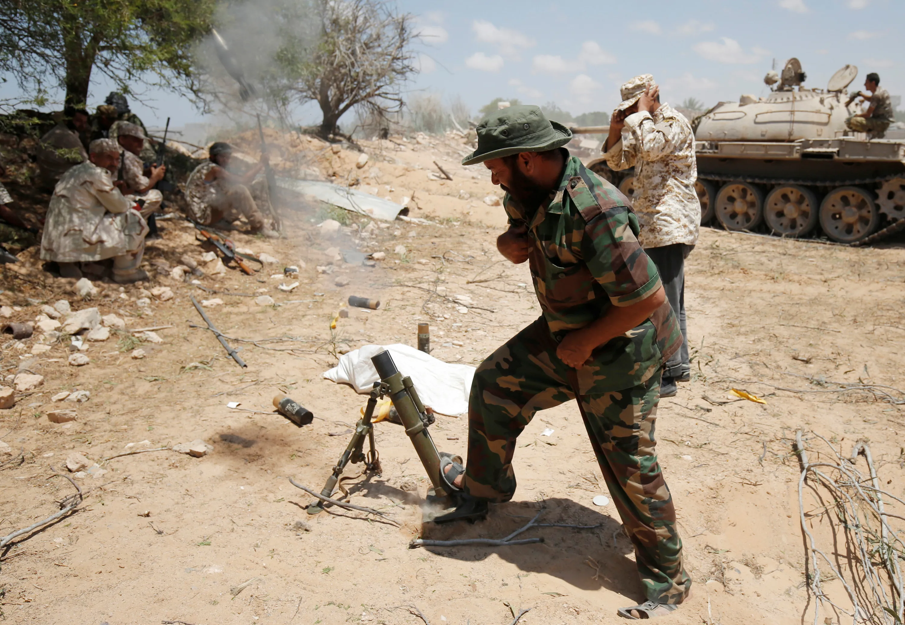 A fighter of Libyan forces allied with the U.N.-backed government fires a mortar during a battle with IS fighters in Sirte, Libya, July 21, 2016. (Photo by Goran Tomasevic/Reuters)