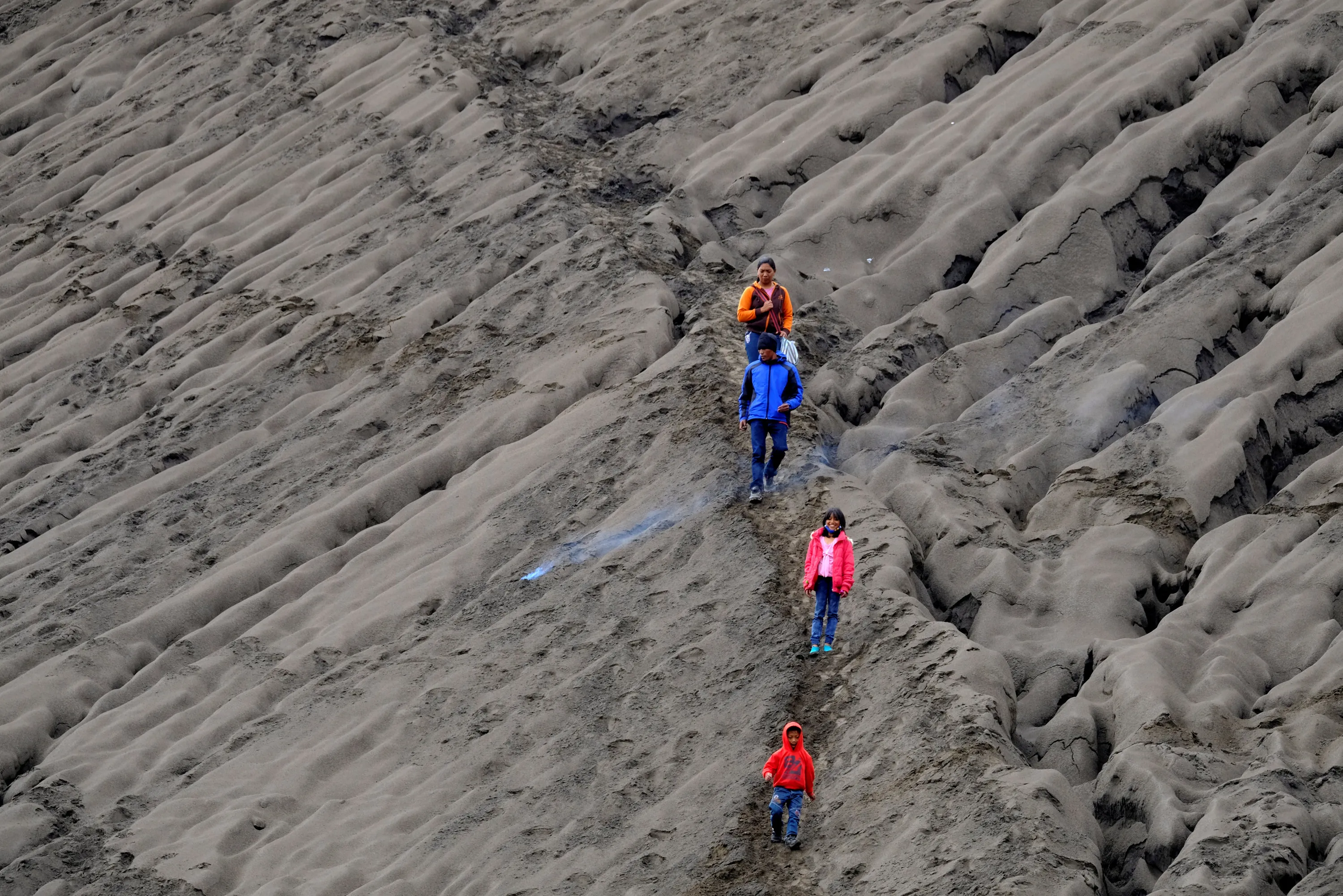Hindu villager walk down Mount Bromo during the Kasada ceremony, when villagers and worshippers throw offerings of livestock and other crops into the crater, in Probolinggo, Indonesia, July 21, 2016. (Photo by Reuters/Beawiharta)