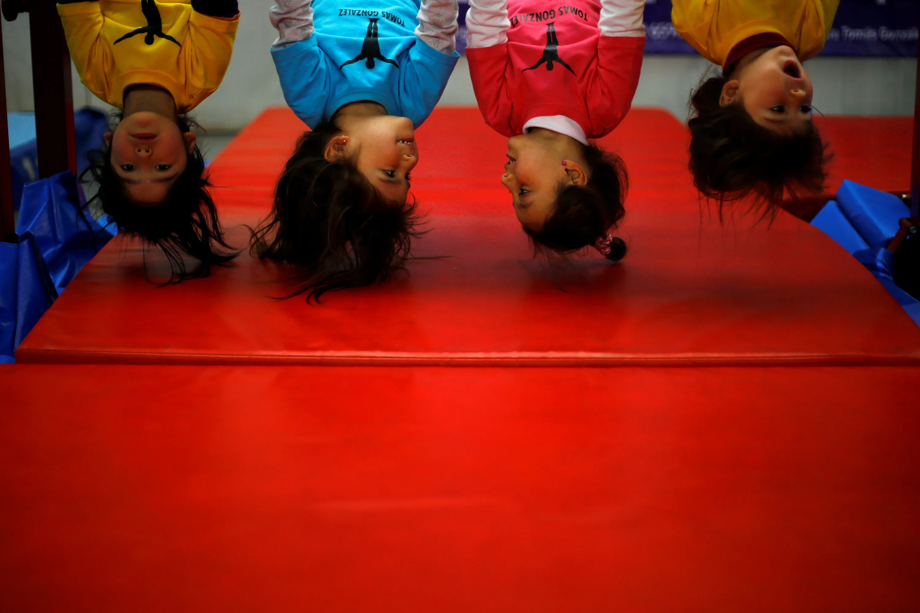Children train during a practice session at the school-gym of Tomas Gonzalez, the first Chilean gymnast to qualify for the Olympics, in Santiago, Chile July 20, 2016. (Photo by Ivan Alvarado/Reuters)