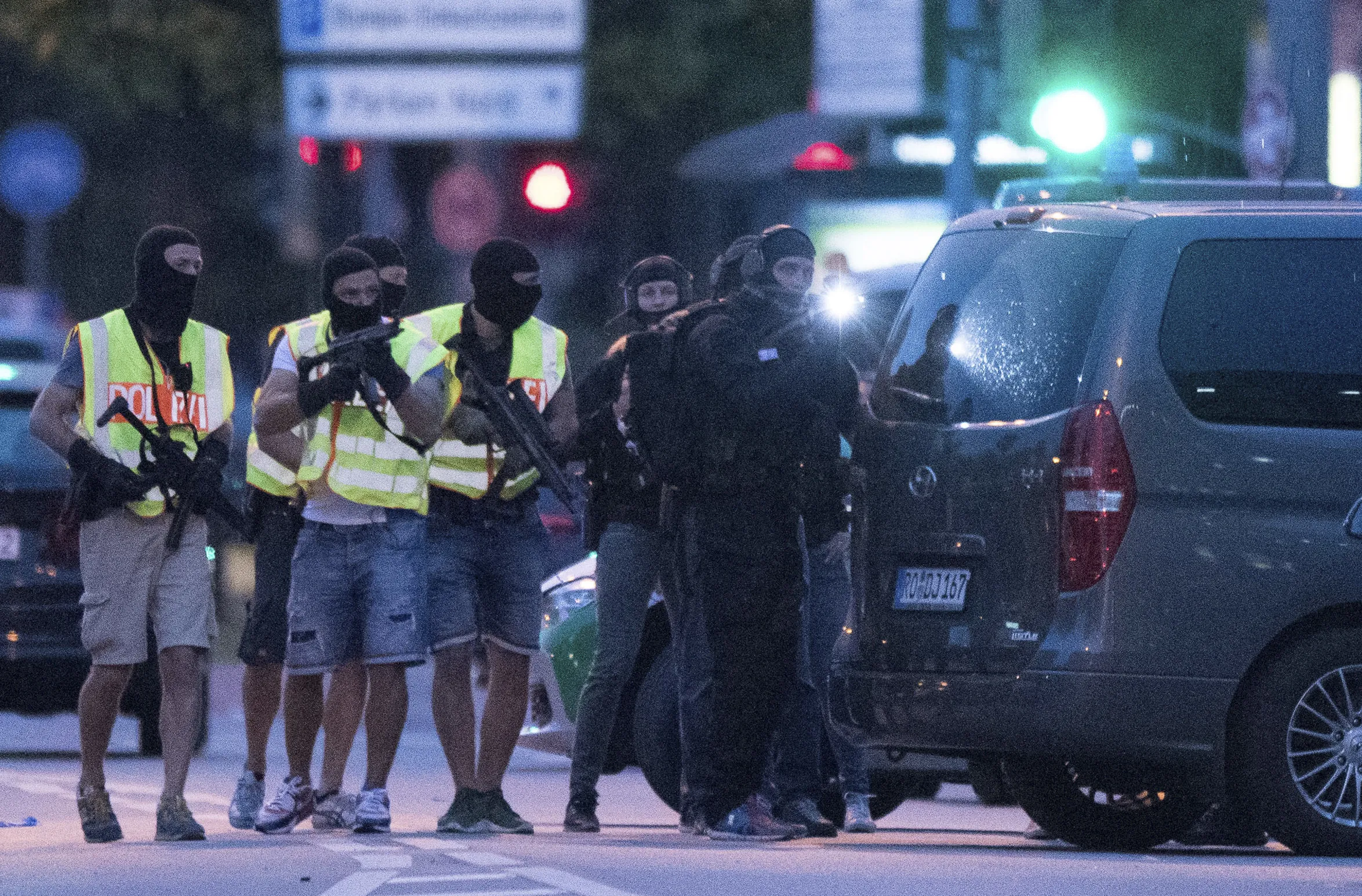 People leave the Olympia mall in Munich, southern Germany, Friday, July 22, 2016 after several people have been killed in a shooting. (Photo by Sebastian Widmann/AP Photo)