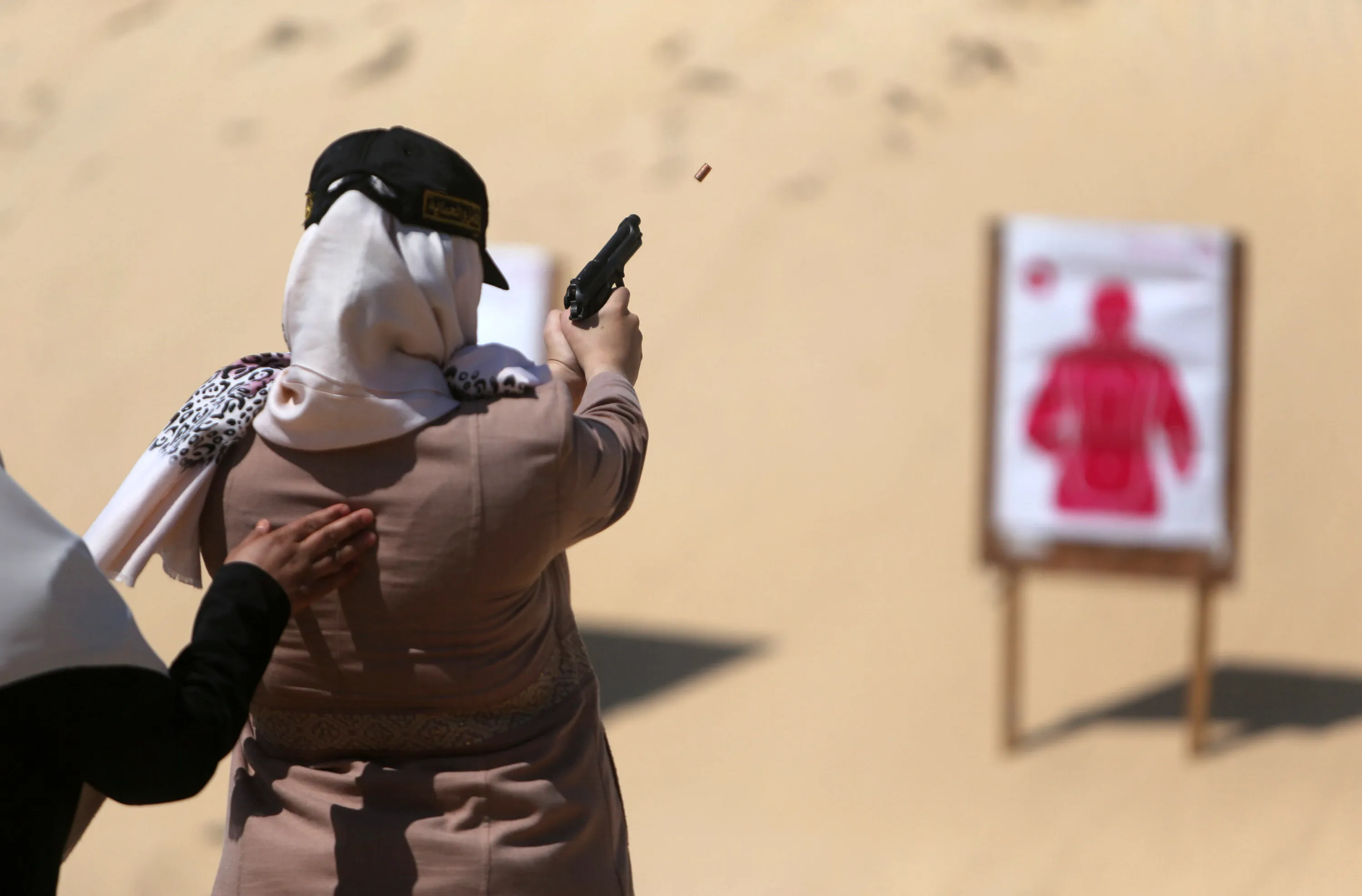 A Palestinian woman fires at a target during a training session for the families of Hamas officials, organized by Hamas-run Security and Protection Service, in Khan Younis in the southern Gaza Strip July 24, 2016. (Photo by Ibraheem Abu Mustafa/Reuters)