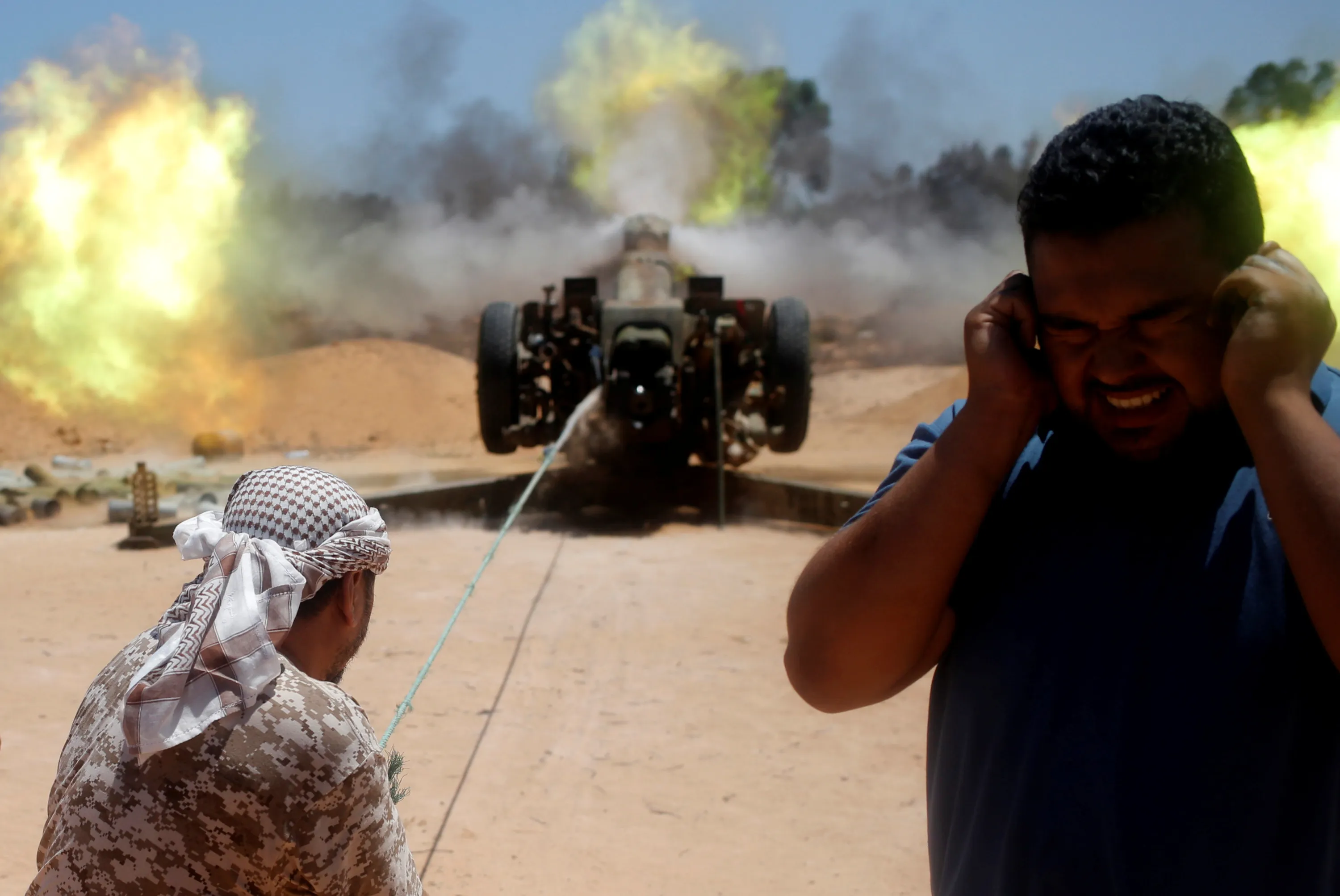Libyan forces allied with the U.N.-backed government fire a 122 MM artillery towards Islamic State fighters positions in Sirte, Libya, July 24, 2016. (Photo by Goran Tomasevic/Reuters)